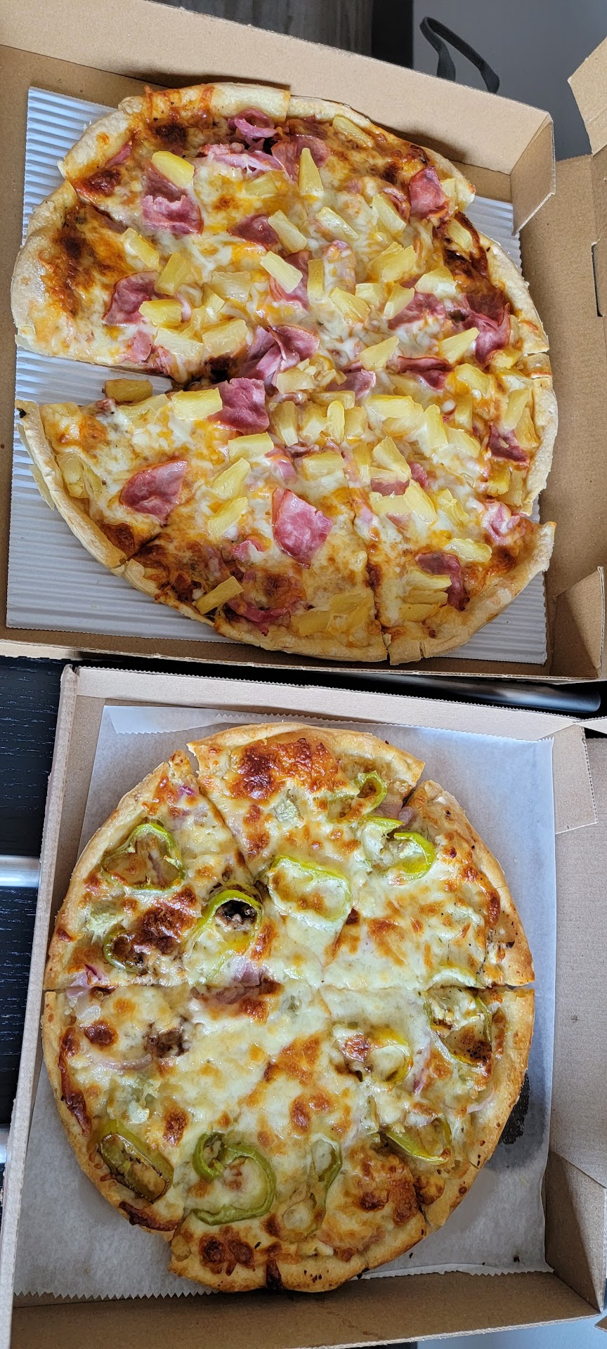 Read moreTo start with the positive the service was good and the people friendly. My wife ordered the salad supreme and she was happy with it so we’d give that 3.5 as it is basically ice berg lettuce. It was what you come to a pizza place for that was disappointing. We ordered stuffy sticks which seem like hot dog buns with a little mozzarella cheese and some sparse pepperoni and red sauce which I assume is also their pizza sauce. The sauce has very little flavor and basically $10 for these is too much. We ordered the large Italian sausage and veggie pizza. When it came it looked undercooked as the cheese was not very melted and the mushrooms were wet and slimy so I am guessing they come from a can and are not fresh. I should have asked them to take it back and cook it some more but we were hungry. My wife picked up a piece and it folded in half and the toppings slipped off. And it was pretty mushy. She would not eat it. I ate two pieces and they seemed off and undercooked. Later at night my gut felt like a rock so my stomach was not happy with it. We took the rest home and I hoped I could cook it a little better as I hate wasting food and it was almost $20. Popped it in the oven and then finished it with the broiler to try and crisp it up. Almost 20 minutes total and it was still mush in the middle and smelled weird. Into the garbage it went. Trying to be fair with my reviews but overall very disappointed to get sub par breadsticks and pizza at a pizza place. I saw other reviews that the pizza is bland and for the two pieces I ate that describes it well. The restaurant was about half full on a Friday at 530 but the pick line was long so some people must be...