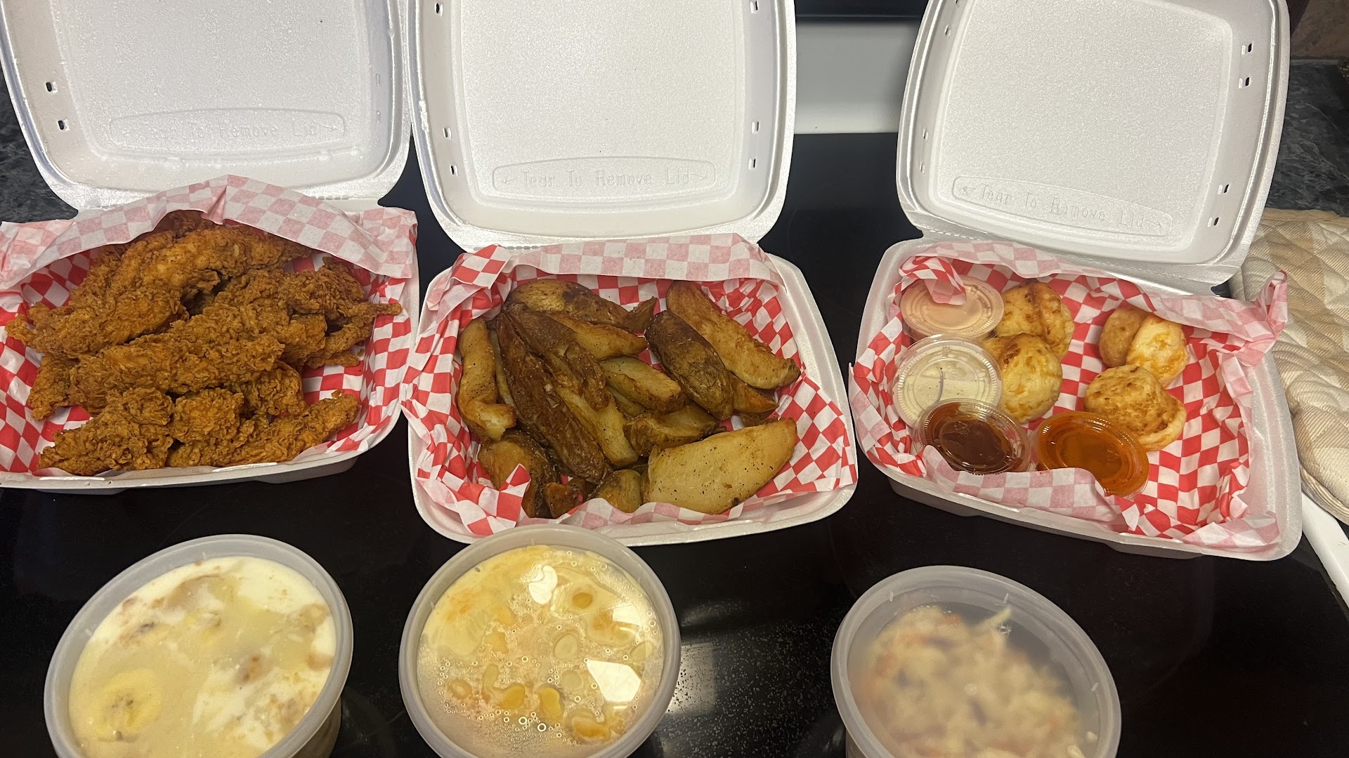 Well let me start by saying this is our first time to eat Waldo’s and it will be our last. We stopped by this location on our way home we needed food for 4 adults. So we check the app and we decided to get the get the feed the flock which was supposed to feed 4 people. Well the app would not allow us to place an order and pick up the same day ok No big deal we will just use the drive-thru. So I the guy asked what we wanted (and I read our order exactly from their app)Then he asked what 2 sauces so do I get 2 because the app says 4 . He said ok sure what other 2 so I told him I said I wanted to go ahead and include the pint of banana pudding for $12 and the side dish of tomato and cucumber. He said I can not hear you I said I'm sorry I am all but yelling sir so then he was completely silent. For a couple of minutes so I said hello are you there? He was so rude and said YES! I'm trying to figure out your banana pudding I said I'm sorry you don't have to be rude sir he said $60 something drive around well that was like $6 more than what the online order was so when I got to the window I asked the guy at the window (and it was a different guy not the one on the speaker) why is it $6 more than my total on the app? He said let me see so the he came back with the total and it was like 60 cents more than what I was s I said so I just said sure that's fine close enough. He was rushing and rude and said well we had to come up with something in order for you to get your pudding. Which. I did not understand because it was offer with the Feed the Flock meal. But ok he said now pull up there and some one will bring it out as soon as its ready so we did and we wait for few minutes so finally a guy comes out with a brown bag and trys to stick it in my face and I said lets put it in the very back. He sits it in there and walks away. I had a sinking feeling that I should park and check the bag well glad I did because there was no chicken in there. So I pulled back around through the drive-through go to the speaker and ask to get the chicken that they left out. He said pull up and Park ma’am so I did. finally the same guy comes back out with a Styrofoam container of chicken. I said thank you. He apologizes. I get home, we begin, unloading the contents and chicken look good potato logs looked horrible, greasy and broken. The macaroni and cheese was cold and this banana pudding that $12 and caused such a catastrophe was half a pint and this was supposed to feed a family of four upon thinking about it all the containers were half a pint and we’re supposed to be larges. There is no way that could be a family of four plan on calling and speaking to a manager, but I didn’t want to do it tonight and run the risk of speaking to the three guys I had to deal with If this is how the order was supposed to be was ridiculous almost $60 for that. See the pictures below. very disappointed to say the least I feel like I wasted money $12 for the banana pudding totally blows my mind and it wasn’t that great way too sweet also as you can see, they did not include a receipt with the the itemized total on it only the order receipt but it was $55.81 very much not worth it. I cannot say that enough and when you factor in the service stay as far...