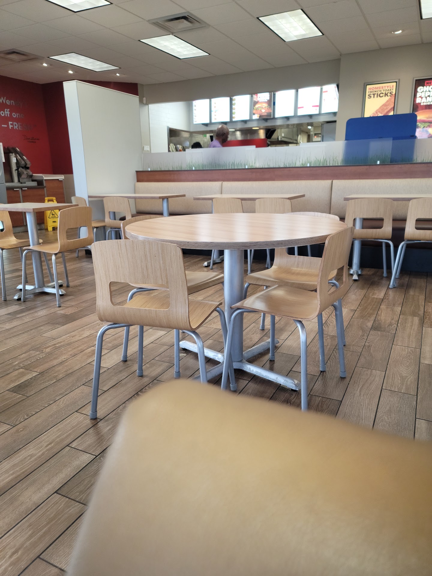 Read moreThe food looks really pretty. The taste is not bad it is just that there is no flavor whatsoever to the meat, there is relatively very little sauce, and the fries have no salt. It is just more of a depressing version of old-school Wendys. Too, they had NO ketchup out and available. When I asked the crew member for ketchup, he said there is some out there. I told him that no there is not. The drink machine was leaking all over the floor and I almost fell several times. They had a wet floor sign out, but that only goes so far bc they should have been actively fixing this and they seemed to not care at all. And, I told them I was dining in, yet my food was bagged like I was dining out. Overall, I was reminded why I stopped going to Wendys 2 years ago. It seems nothing has changed so I will give them another chance in...