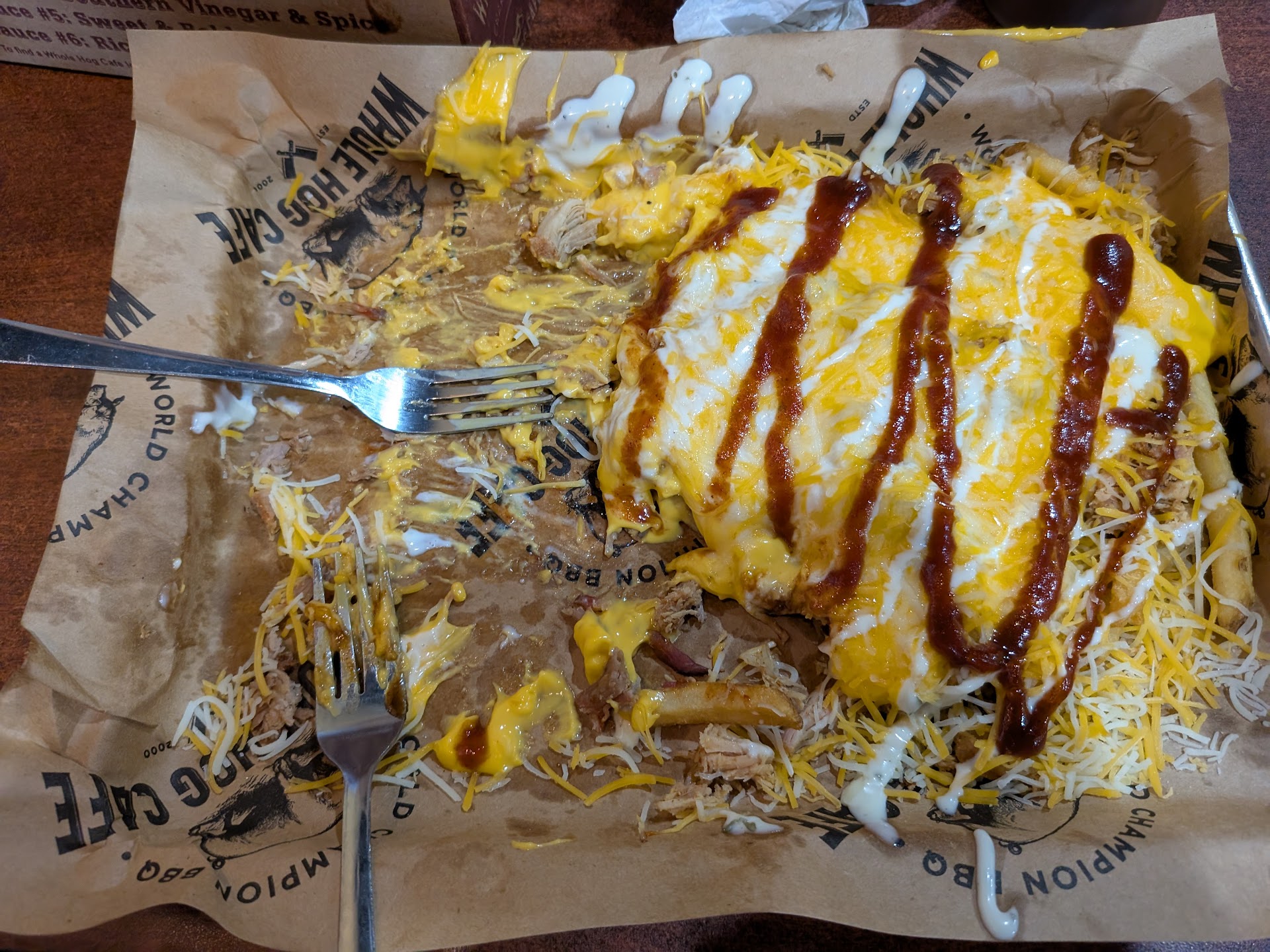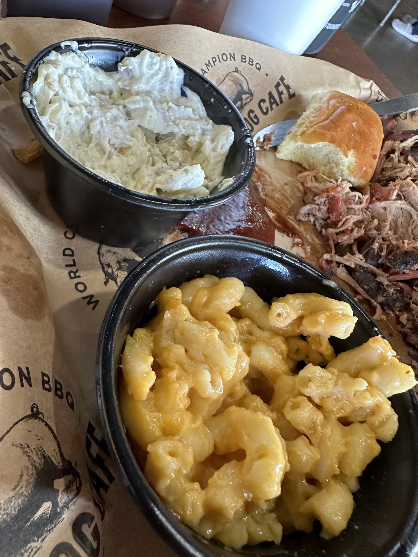 Read moreI had such high hopes for Bbq in Little Rock. Walking in, you are hit with a tantalizing smoky scent. Unfortunately, that's where the smoke stopped. My family and I shared the ultimate platter. Plenty of food for a family of 3. We received heaps of pulled chicken and pork, brisket, 4 pork ribs, 2 dinner rolls, and 3 sides.