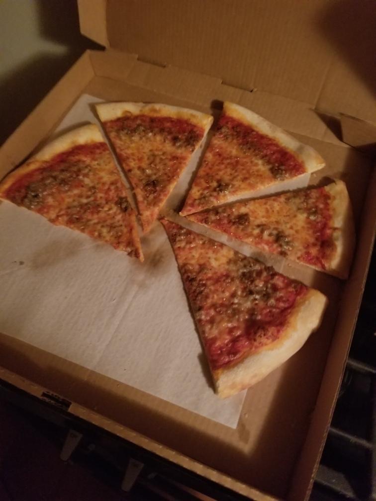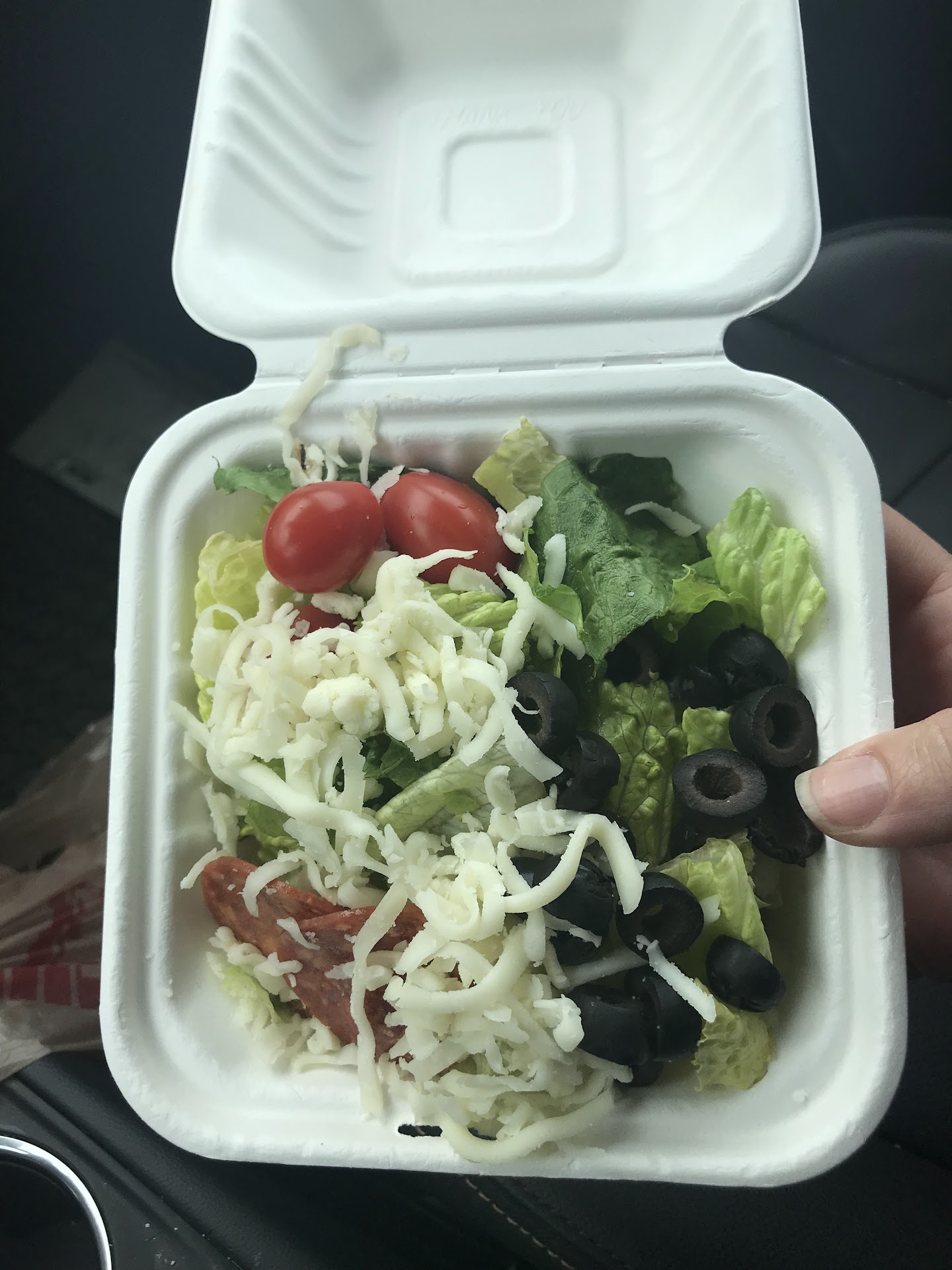 I looked in the bag and there were two small canolis in a box, not three. Not only that, but the pizza was NOT recently remade or fresh; it was disgusting. It was old, covered in oil and the bottom of it was soaked in either oil or water, regardless, it was soggy throughout.