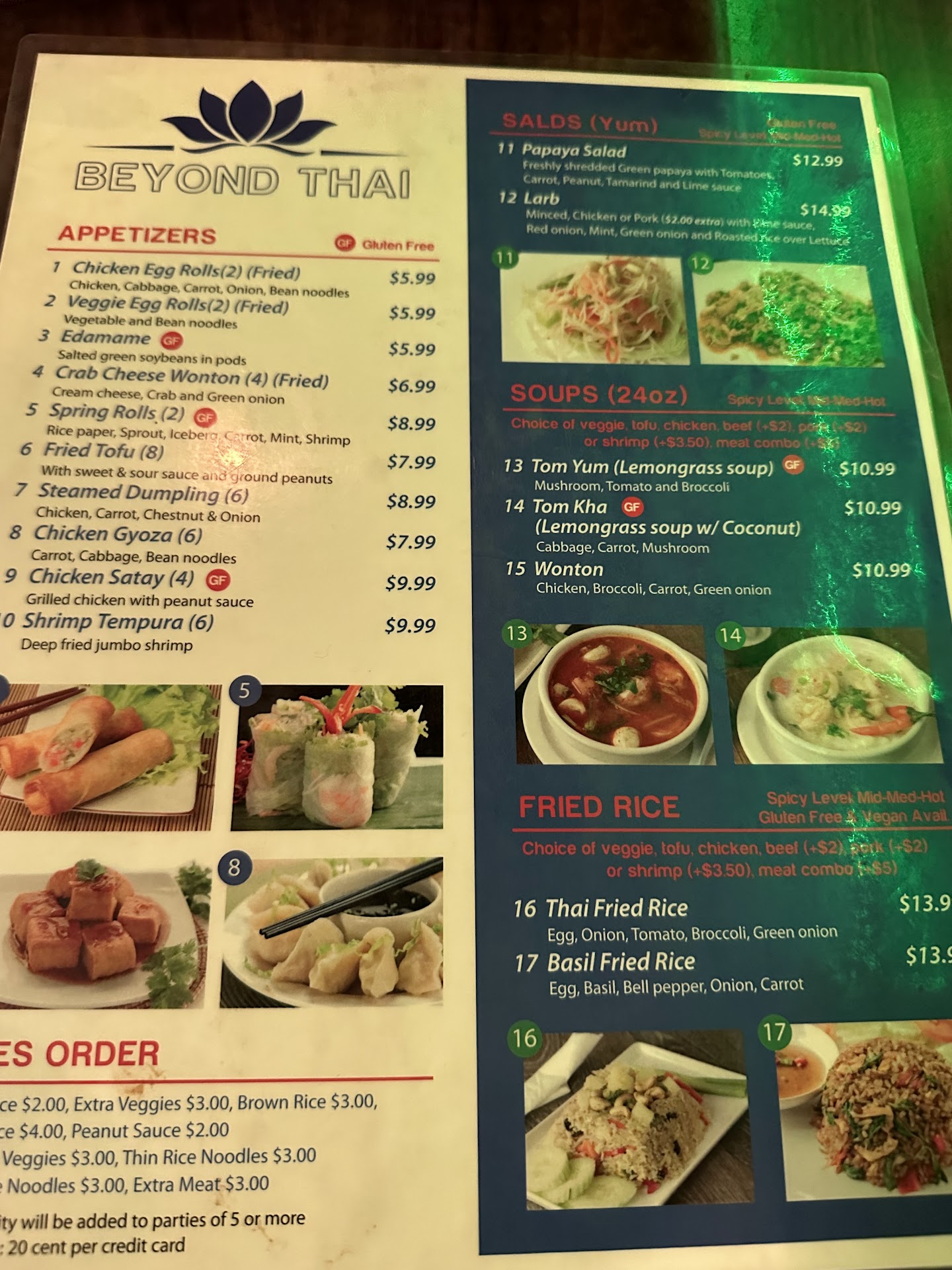 Last thing to add which caught me by surprise, the price on menu is less and what you are charged is more . Not sure if it was done to me or it’s the general practice. Soup is 10.99 (with choice of veg or tofu (with no extra cost) and I opted for veg)on menu but I was charged 12.42 Pineapple fried rice is 15.99 but I was charged 16.99 and Red curry is 14.99 but I was...
