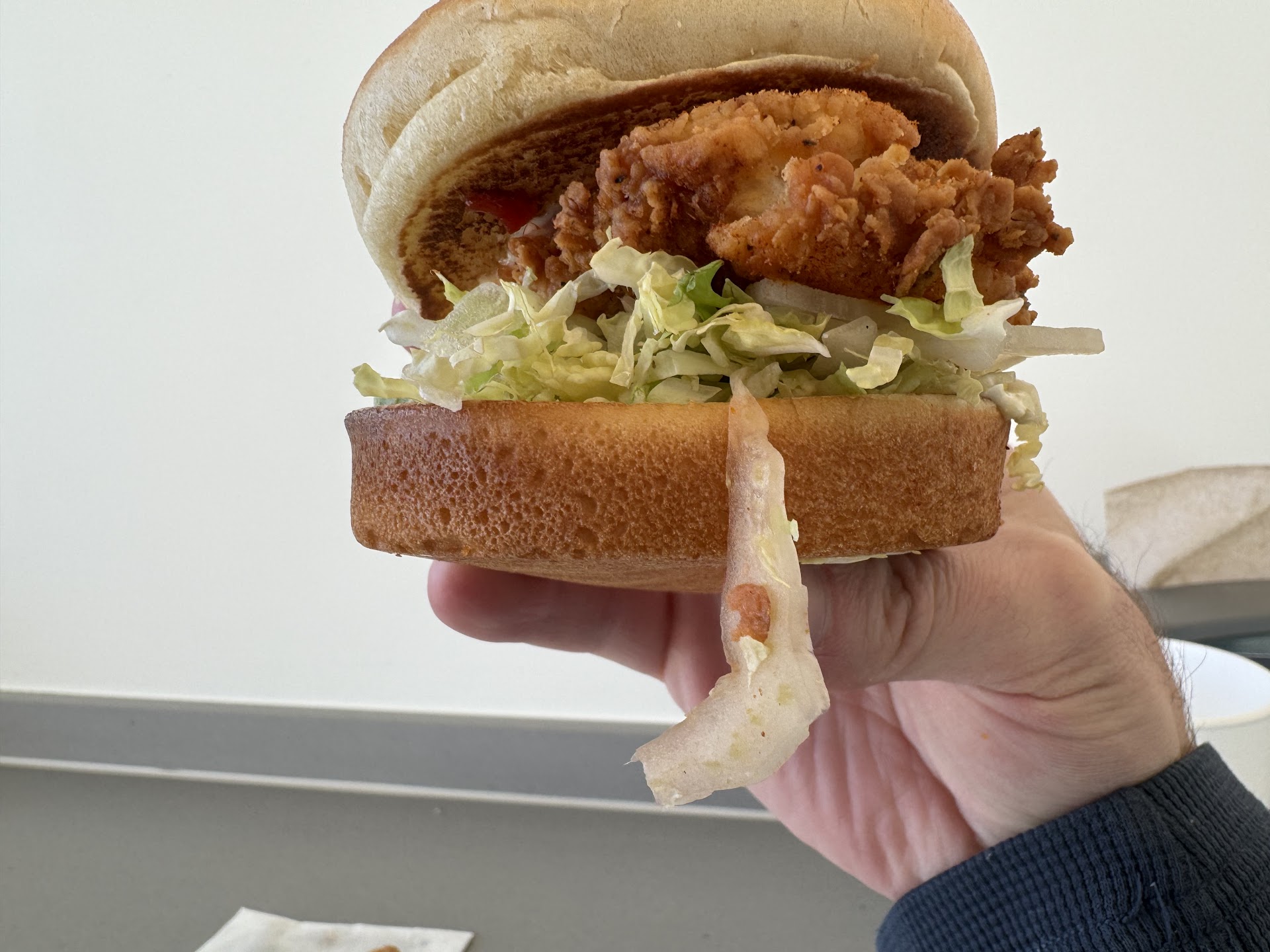 I would say the relish was absolutely delicious that they put on the spicy sandwich. I'd give it an 9/10. Great work on that recipe. The sandwich was just solid, but nothing to write home about. More flavorful than Raising Cane's, but not as good as Dave's Hot Chicken or Houston Hot Chicken (the gold standard), nor as good as Birdcall.