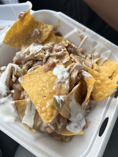 Read moreOkay, this is a food truck, not a brick and mortar store....so hard to rate "atmosphere" or "table wait time". The food, though, I can rate... and it was not good. I had the smothered green chile chicken enchiladas with rice and beans. The dish had almost no flavor... very bland. A little salt would've helped a "little" but there was none. I ordered two barbacoa tacos for my girlfriend and put in the special instructions box "no cilantro please", as cilantro tastes like soap to some people like her. Well, guess what... they had cilantro and she tried picking it out but there's no way to do so. And that red taco sauce... worst tasting sauce we've ever tasted. Just a big ol' mouth of bitterness. Green sauce was good, so I used it to add some flavor to my enchiladas, which needed it. What was good? Oh... the beans......