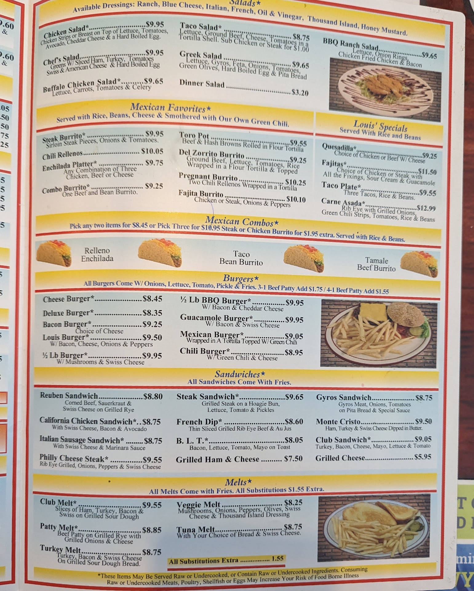 Louis' Diner opens daily, 6:00 am to 3:00 pm. They serve breakfast and lunch items. These include: breakfast burritos, omelettes, biscuits and gravy, meat and eggs, chicken fried steak, chicken fried chicken, pancakes, waffles, french toast, all types of skillets, soups, chilis, salads, sandwiches, hamburgers, melts, Mexican entrees, pork chops, and a Kids' menu. There is so much more as well.