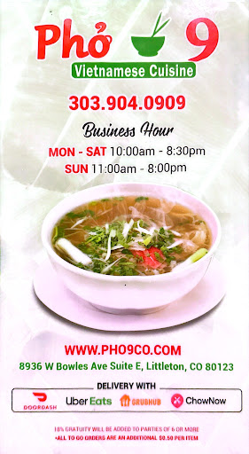 First time giving Pho 9 a try. Food presentation is very nice, BUT even though I'm no expert, I do recognize good Pho - this didn't seem like it was made in the traditional way. Broth tasted almost like it came from a powdered Pho (if I'm wrong, apologies). It wasn't very oniony, and I could barely taste any anise before I put the Hoisin sauce on it. The chicken in the noodle bowl was pretty rough too - it was fresh, but didn't taste like it came straight from the grill like I'm used to with other places (kinda gristly - my wife just couldn't - so I ate it out of respect for the chicken that gave its life :D ). All this would have still been OK, but the service was ummm ... quiet? (maybe a cultural thing - but I don't remember Denver area Vietnamese restaurants being this way but they've all become so over the past several years). The staff barely talk to one-another, and don't even check on customers to see if they want more water, or if the food is OK. It's a bit like service I remember from visiting my own former Communist country - where attentive service was considered "two-faced or condescending". As John Lovitz used to say: "ACTING!" ... it can make a big difference when you're paying over $40 for a casual meal for two, and still having to cough up a tip for basic food delivery to your table. I'm really rounding UP from 2 1/2 stars since I know Pho 9 has the potential do...