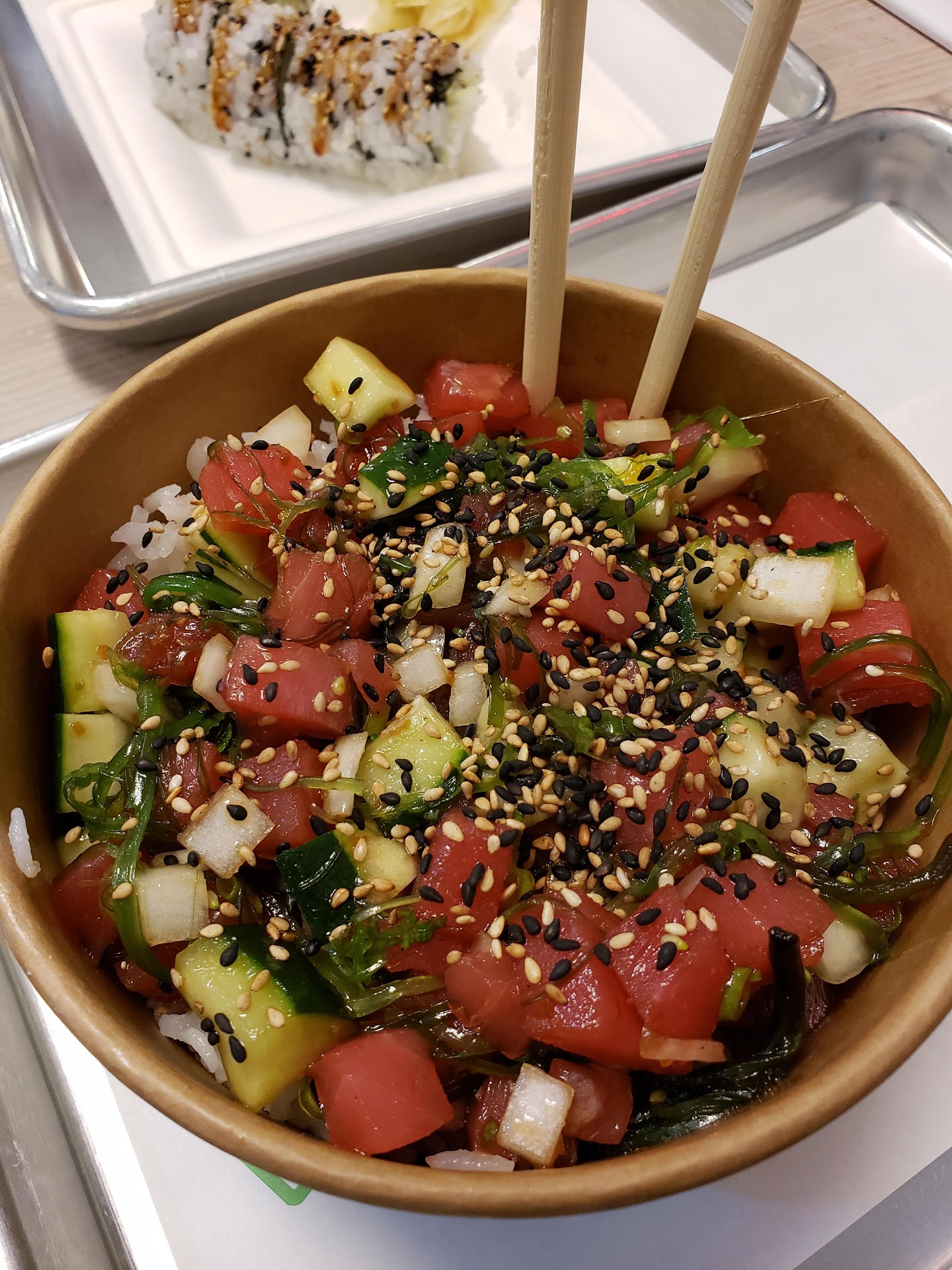 Read moreWhat a nice little surprise. I didn't realize that we had a pokey place in the shopping center. It's kind of hidden behind a post and their windows are covered with advertising. But you open up the door and you find this wonderful little Hawaiian Poke restaurant. I designed my own bowl and I had no problem doing it because everything looked fresh and tasty.