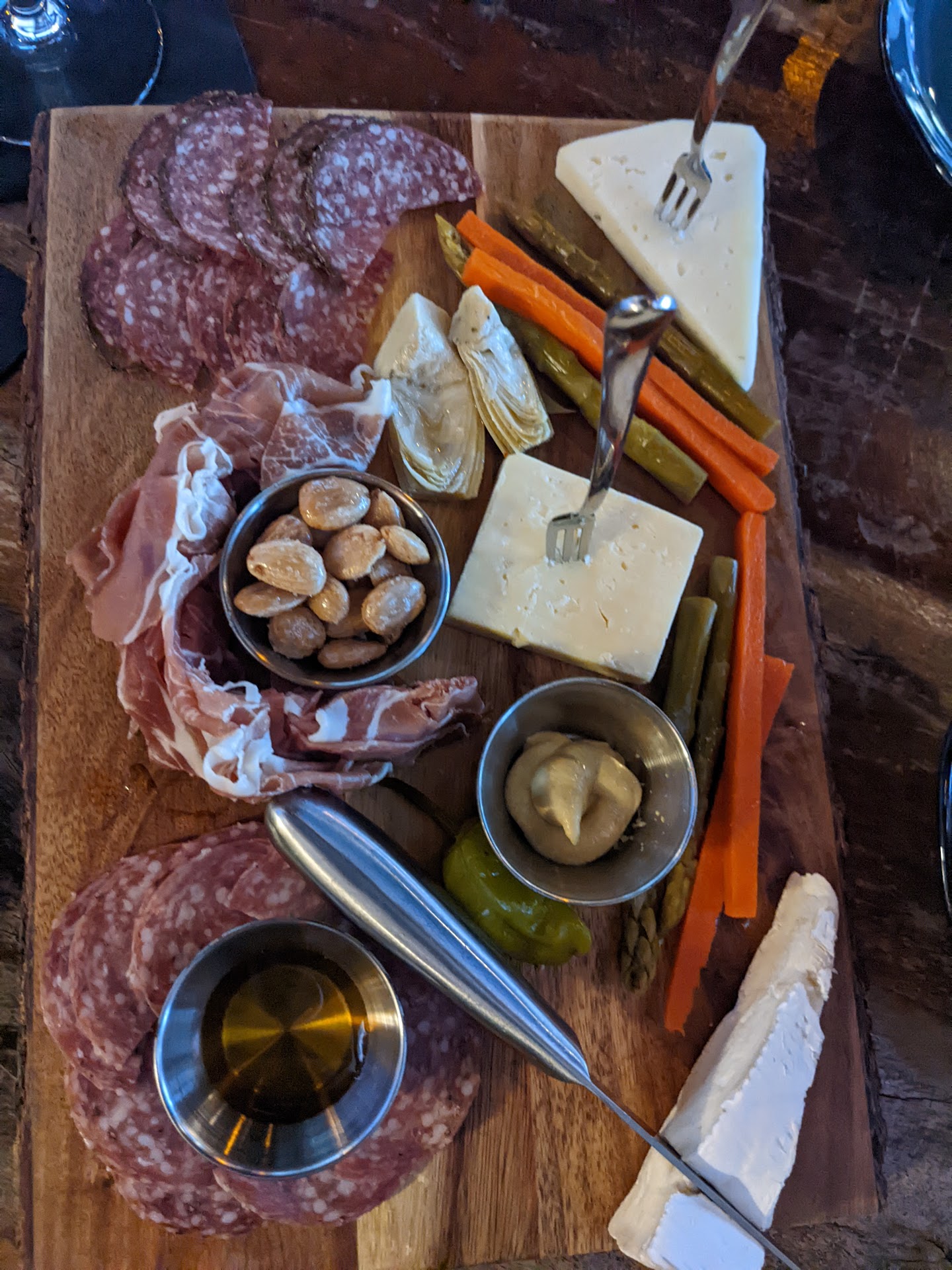They don’t really serve food but they do have some snack things and a Charcuterie board.
