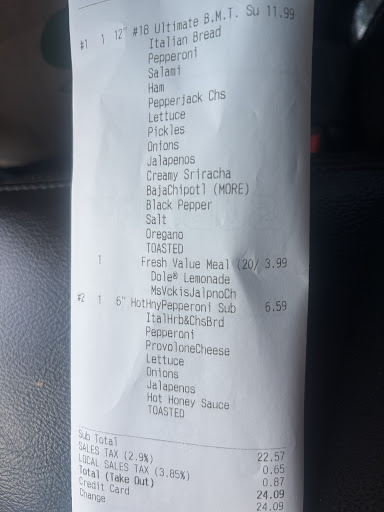 The staff was friendly and efficient, but one employee in particular stood out: Graycen. From the moment I stepped up to order, Graycen greeted me with a warm smile and attentive service. They took their time to ensure my order was just right, asking questions to perfect my sandwich and making thoughtful recommendations on toppings. It was clear that Graycen took pride in their work, and their professionalism added to the positive experience.