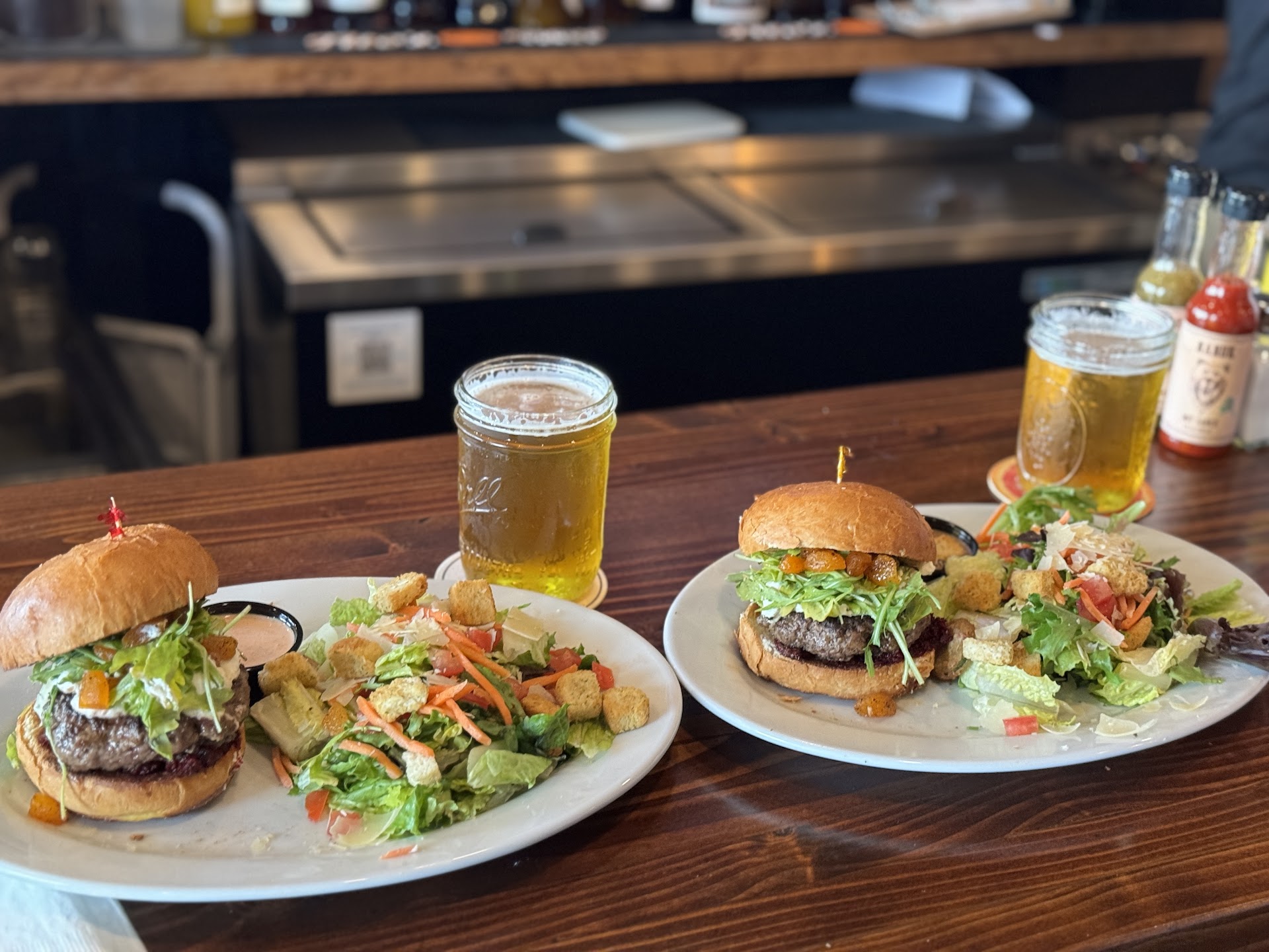 For our meal, we both opted for the monthly burger special (see chalkboard pic). It was one of the best burgers we have ever had! The lemon ricotta, beets, apricots and arugula complimented each other and the always delicious elk/beef blend patty so well! It was a perfect savory and slightly sweet delight!
