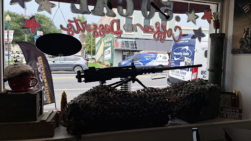 The uniqueness of this particular coffee shop is it also has a small firearms shop. There is a variety of handguns and rifles for sale. The combined coffee and gun shop is Marine Veteran/LEO owned business.