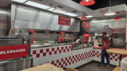Five Guys is one of the better burger places. They offer one and two patty burgers that are fried after you order them. You can add cheese and/or bacon to your burger. They also offer hot dogs and BLTs.