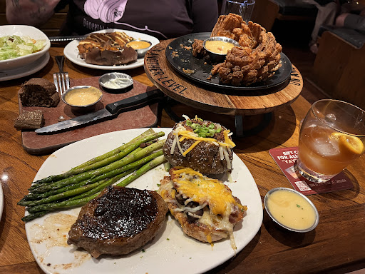 Ā Ā Ā Read moreOutback Steakhouse for the win!!!! Man I've been here a few years and had an absolutely horrible experience. Today was not that, and it was delivery!!! Got a porterhouse steak, a half rack of ribs, loaded mashed potatoes and asparagus. Braaaaah, when I tell you I've entered the sparkly gates of taste bud paradise it's an enormous understatement. Let's start with the porterhouse which was cooked to absolute perfection! Shared this steak with my wife, but quickly snagged up the filet side. She gets none lol jk (she definitely stole some lol). But let me tell you guys it literally melted in our mouths like butter, you could literally pull it apart with your fingers with zero effort and that was the strip side. But the filet side was absolute magic in your mouth, yes I said it magic!! An experience you can't even put into written word. It was that incredible. Now on to the ribs, omfg fall off the bone, tender with a hint of sweetness to pull it all together. Absolutely mouthwatering. The loaded mashed potatoes were off the chain, but unfortunately we're neglected due to being in previously described taste bud heaven, but when it was there time to shine they didn't disappoint, and last but not least the asparagus. Most I've had in the past have been flavorless and tough or undercooked, but these lil flavor bombs were gone in 60 seconds!!! Now as I sit here and write this review I wonder if it's even legal to make food this delicious, but either way I'm deleting my old review and admitting that Outback had a bad day last visit and has more than...