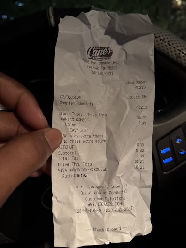Ā Ā Ā Read moreSo a while back I did a review about how tiny the chicken was at this location, and stopped going, but then I gave it another shot, much later in the year, and the size was back to normal, hadn't been back in a while, so last night I decided to drop in and I had this feeling when they handed me my order that I should check it, I was getting small chicken vibes. So I opened it while sitting at the light. They did not disappoint, just as I suspected. I ordered Box Combo, they served me chicken nuggets not tenders but charged me full price for tenders. Raising Cane's your officially a rip off chain of people's hard earn money, and don't send me a typical reply of hate to hear you had a bad experience, we aim to please bs you know what your ordering and serving. Keep it! I don't want that either! Now I will say this location has been consistent with courteous welcoming staff, and most of the time faster than chickfila on my visits thru drive thru. However last night drive thru at 9pm hour he was either a new hire, bad day,or just doesn't give a damn, he handed me my food and shut the window. Now I don't expect a conversation at the drive thru window, but I do like to thank and appreciate their service. Don't put someone at the drive thru window with no personality, or leave them at the window when they're clearly having a bad attitude. Bad...