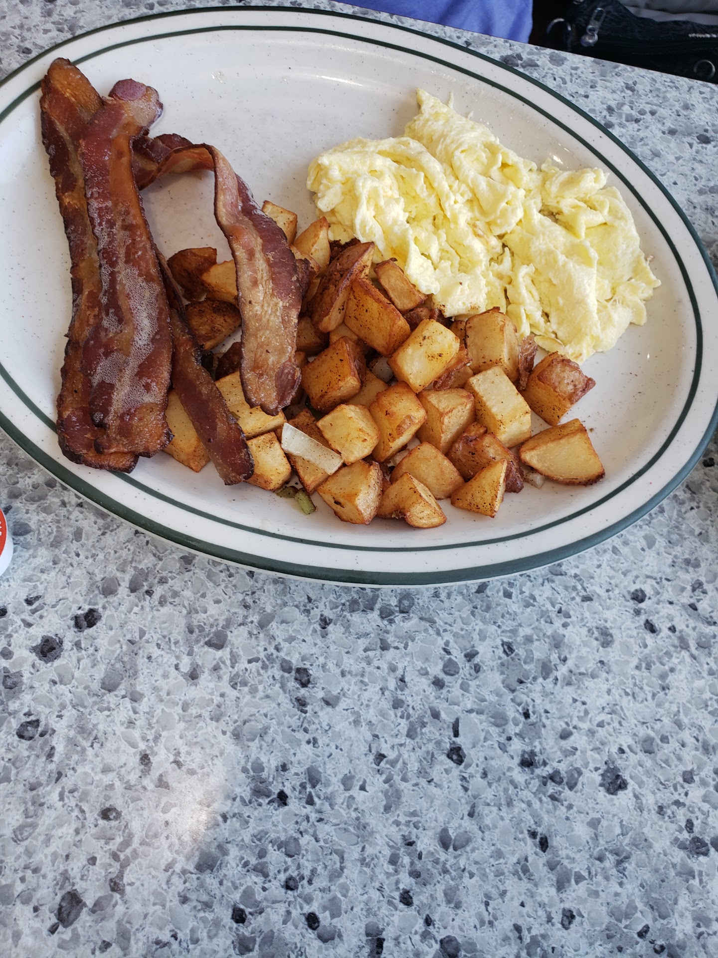 Now to the food, I asked for a water with lemon, and the water tasted nasty and the lemon was old and almost dry. The coffee was weak, I ordered a chicken and waffle with a side of country potatoes. I took the first bite of the potatoes and that was it, they were not even cooked completely. The waffle was luke warm and didnāt even melt the spread they put on it. The chicken was horrible!! If was hard and dry, I literally took a bite of a wing and a couple small pieces of the breast and thatās all I could tolerate. Just not a good dining experience.