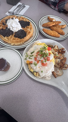 Ā Ā Ā Read moreI did really enjoy this place, it was quite busy but it is Saturday. We were quickly sat as it was 2 of us. The boysenberry waffle was amazing, the scramble was pretty decent, chicken tenders were ehh, more like chicken finger. The scramble was decent but the potatoes were like chips and country like they were reheated old potatoes. Other than that service was good and I would definitely go back to try another location because the potatoes really bothered me based off pictures I...