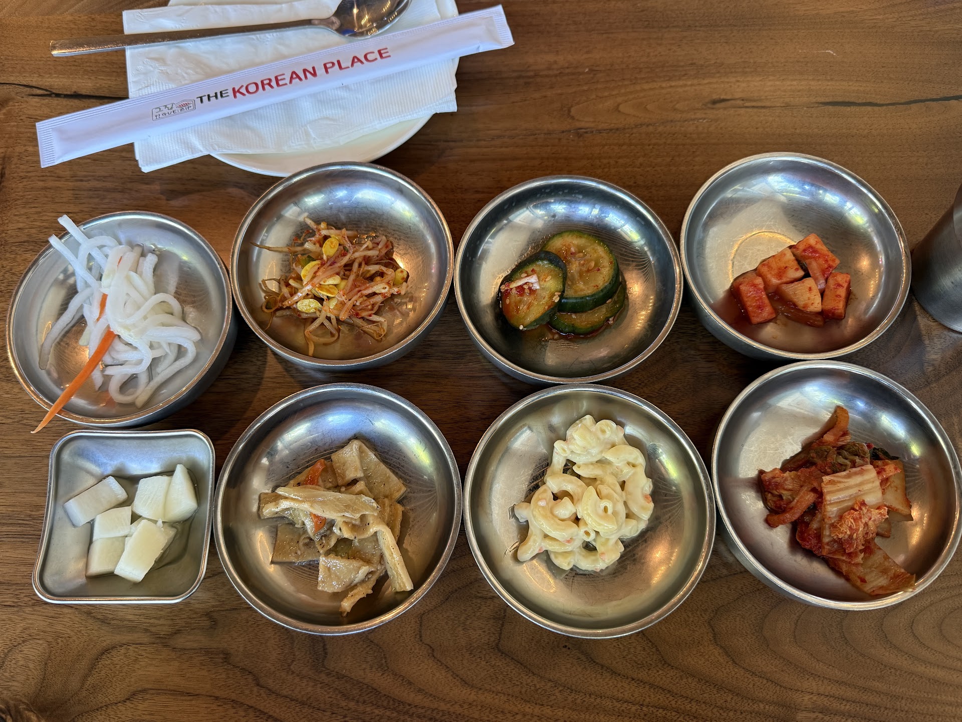 The banchan were good overall, though the macaroni salad was the one miss — dry and a bit bland. Service was friendly and attentive throughout.