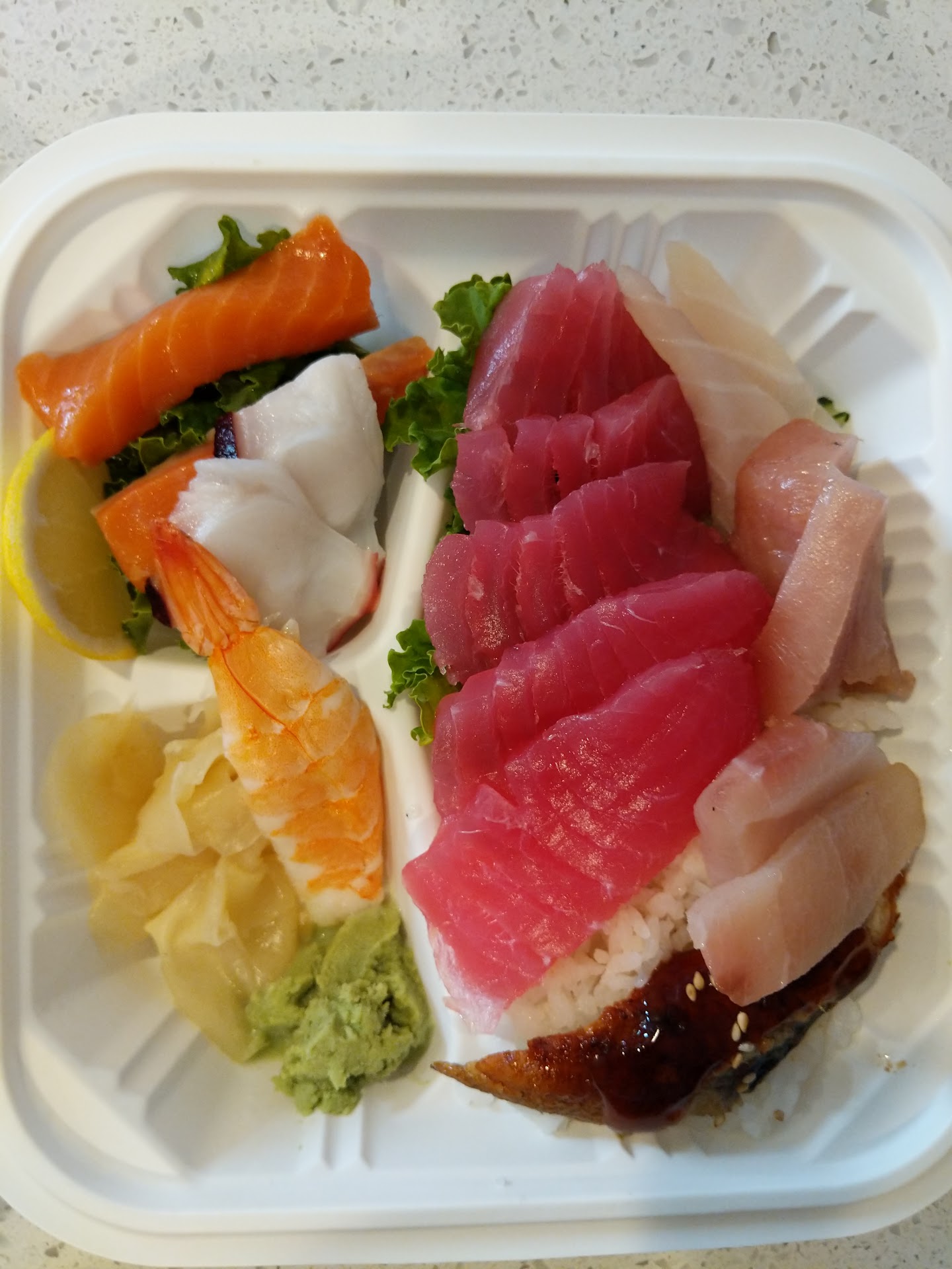 We ordered a chirashi ($19) and California rolls ($4) for takeout. The staff was friendly and the food was fast (ready in 15 mins). They were also kind enough to substitute tuna for the tamago in the chirashi. The fish was okay and I wished there was more rice. The California rolls were good but on the smaller side, but also only $4 each! Overall, I think it's a good spot for quick and relatively cheap sushi, but I will probably choose...