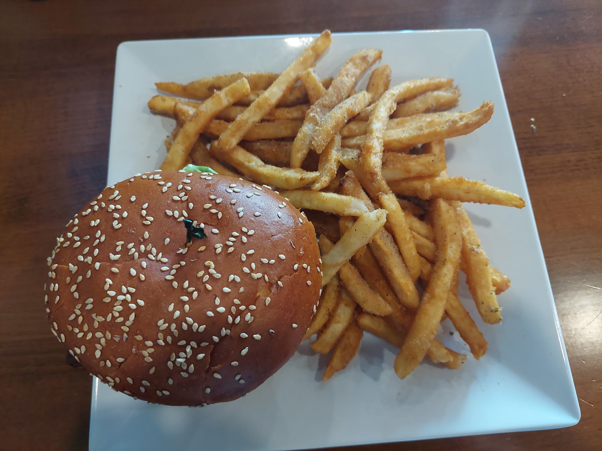 Read moreDELICIOUS! The menu at this place is not to be ignored. Fantastic, tasty options all the way around. We had the calimari, the filet melt (OMG!) and the buffalo s chicken sandwich and nothing was a disappointment, including the beer battered fries. I can't wait to go back and try about a dozen other things I wanted to order last time, but my tummy is only so big and the poke nachos were calling my name and looked amazing, and the tri tip salad looked awesome, I mean...c'mon! There were a lot of good options on tap, as well as a pretty good wine menu, but for someone who can't drink beer anymore, I would have liked to have seen a tap cider option, maybe pineapple or something seasonal, plus a good apple or pear would be great. They do have a couple of more dry, tart cider options in bottles, but for someone who prefers a pinch of sweetness, the options just weren't appealing to me so I chose the rose flight and that was a good buy with lots of options so you don't have to pigeon hole yourself into a whole bottle if you may not like it. The service was pretty darn great too! Anyway, the moral of my story is, we'll be back and you should go if you're thinking...
