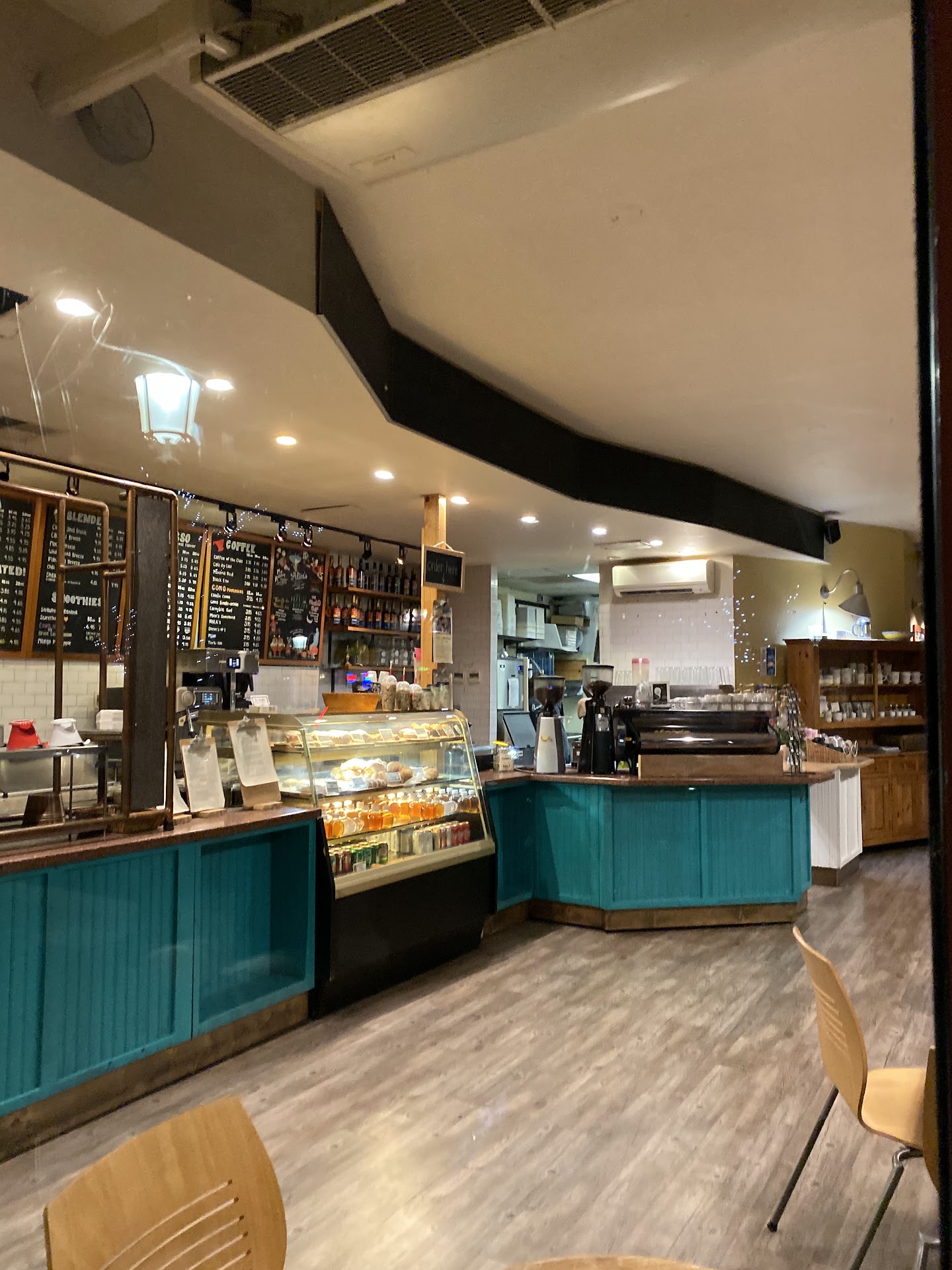 Baristas are friendly and they do coffee art with the foam. Plenty of indoor and outdoor seating. Most times of the year Panama Bay leaves the big windows open, which gives you the best of both worlds. Lots of people watching. Con - there are flies, but they add to the cafe vibe. Free wifi. Dog friendly.