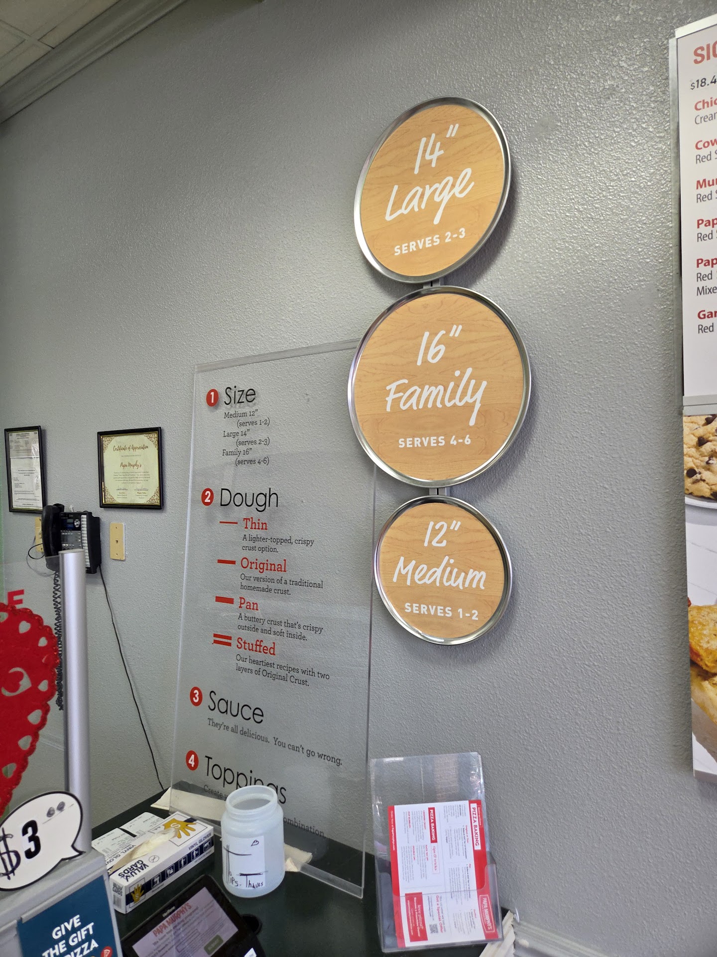 Read moreI called in an order and my mother went to pick up for me yesterday. When she got there the older guy behind the counter acted like an A hole towards her. Really happy to have his job..She presented a coupon and he said it's too late for it as he completed the transaction and would not honor their coupon.She asked why do you send these in the first place and then do not honor them? Mom said he acted in an aggressive manner towards her and she said "I'll remember that for next time" It's a good product but I'm losing my appetite for this store. The pizza's we brought out by a pleasant...