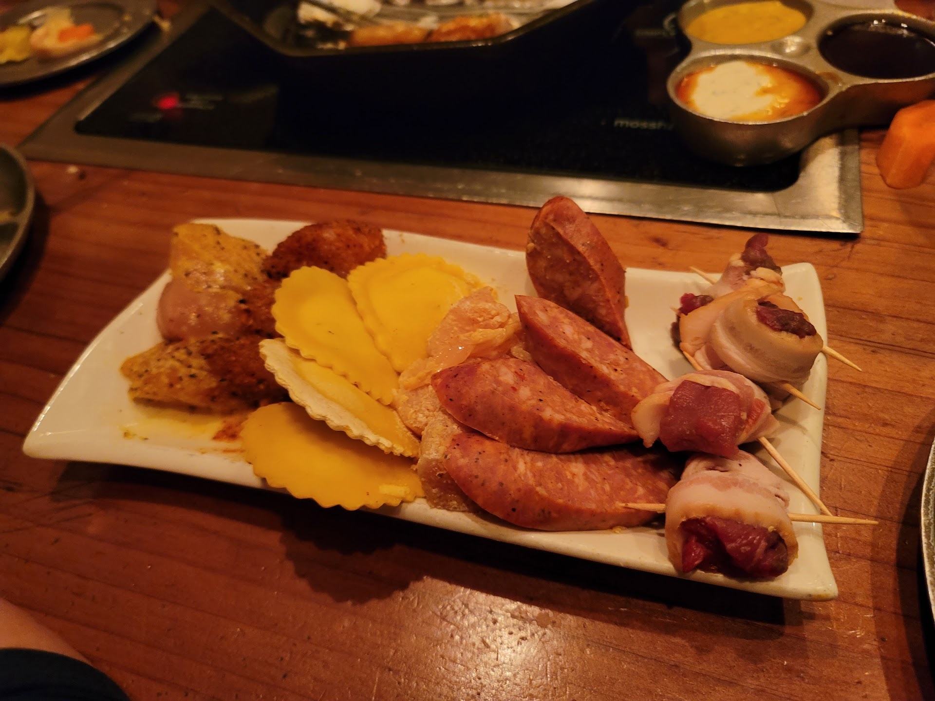 Between poking, grabbing, & dipping in the various meats, vegetables, poultry and the what nots, it was very delicious.