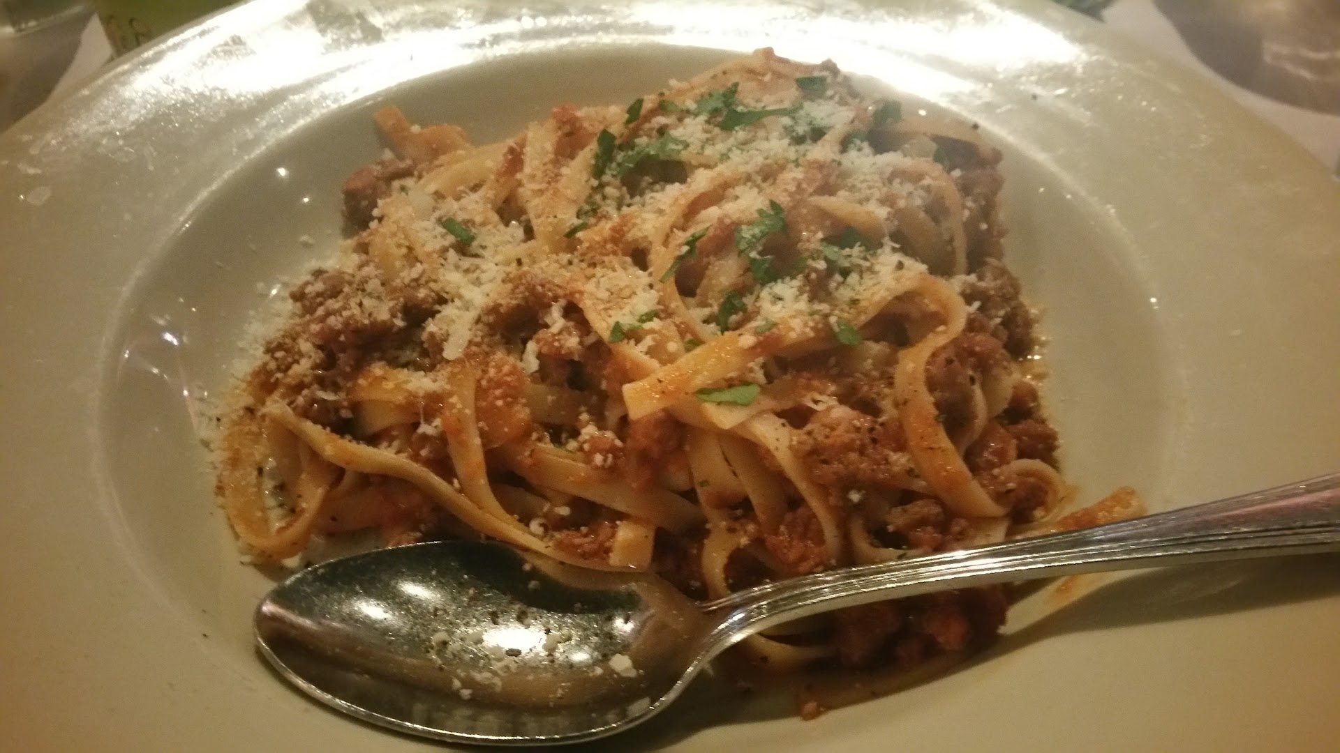 I ordered their Fettuccine Primavera with Pesto and fresh vegetables. The waiter asked if I wanted to upgrade for $3 to their fresh made pasta (of course I do) but the dish could have had more pasta, especially since I upgraded but oh well. I liked the flavor but my wife felt that it had to many Pine Nuts.