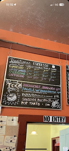 It's a small space with just a couple chairs but it's cozy and definitely a great local haunt. Beautiful view to sit at the window bar during fall and just look at the mountains and passersby while enjoying a warm drink.