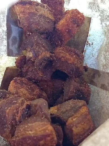 Read moreI've heard a lot of good things about this place, and I have to say I'm underwhelmed. We bought cracklins only. The seasoning was good and the meat tasted good, but while they were cooking, the chunks of meat stuck together and weren't separated. We ended up with large clumps of meat that we had to separate ourselves. Also, because the meat had fried in clumps, the inside fat hadn't cooked all the way through, and the texture felt like warm, but raw, pork fat. It was nasty. We may return if we don't have time to go to our usual place, but I don't know. That pork fat is an...