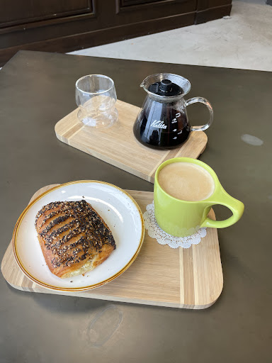 Read moreTwisted Tulip is a cute and cozy cafe with a very relaxing vibe. I ordered an iced latte with almond milk and the latte of the day 'Vanilla Rose Latte'. The Latte of the day was good but the rose/vanilla aspect was very not very pronounced. The other latter was also good. They offer a good variety of drinks, pastries, sandwiches, etc., The decor was unexpected (graffiti styles) with the name being twisted tulip, but it was a bright fun look. They have stools along a glass window, as will as tables/chairs and a cozy corner with a little couch, and a shelf of books (all very inviting) They also have outdoor seating but there seems to be a lot of construction happening around the building...hopefully it will be done by the time its warm enough to sit outside. The staff was friendly and the music was great; Overall a great experience. I'll definitely be back and recommend...