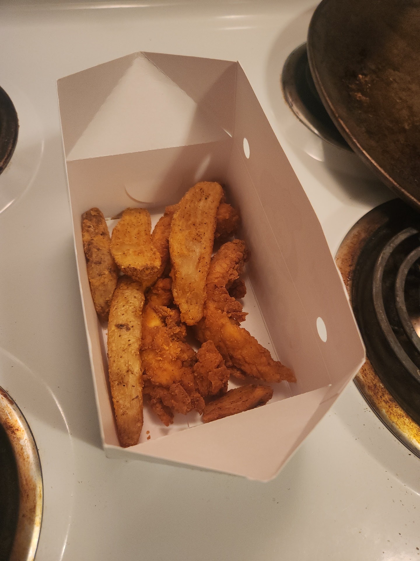 Read moreolder guy behind the counter always has an attitude and skimps you on your order. I kindly asked for my order and he picked through and gave me half a handful of wedges and the most crusty tenders he could find