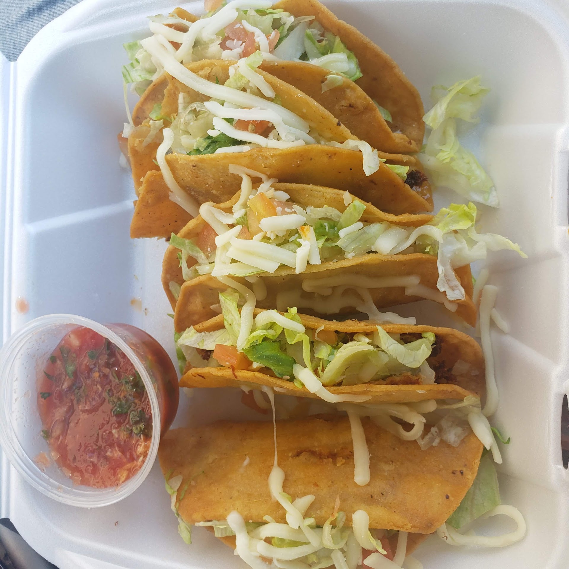 Ā Ā Ā Read moreCame in to give it a try and wasnāt helped for like 3-5 minutes. Like there was no one even in the place to help me, it was empty, I was even checking to make sure I didnāt walk into a closed restaurant by accident. But eventually someone came out from the back and I ordered two hard shell tacos a la carte. I had read the reviews that they get soggy so I ate one in the parking lot, lol and it was nice and crispy and one when I got home, it was a bit mushy. They had a very nice flavor, wish there were more tomatoes, Iāll probably ask for extra next time. They were pricey as others have said, costing me almost $10.00 for two tacos (smaller than T-Bell). Not a place you can frequent, but worth a try. The place was being used as storage and the inside didnāt come off the most clean because of it. Also, no inside dining,...