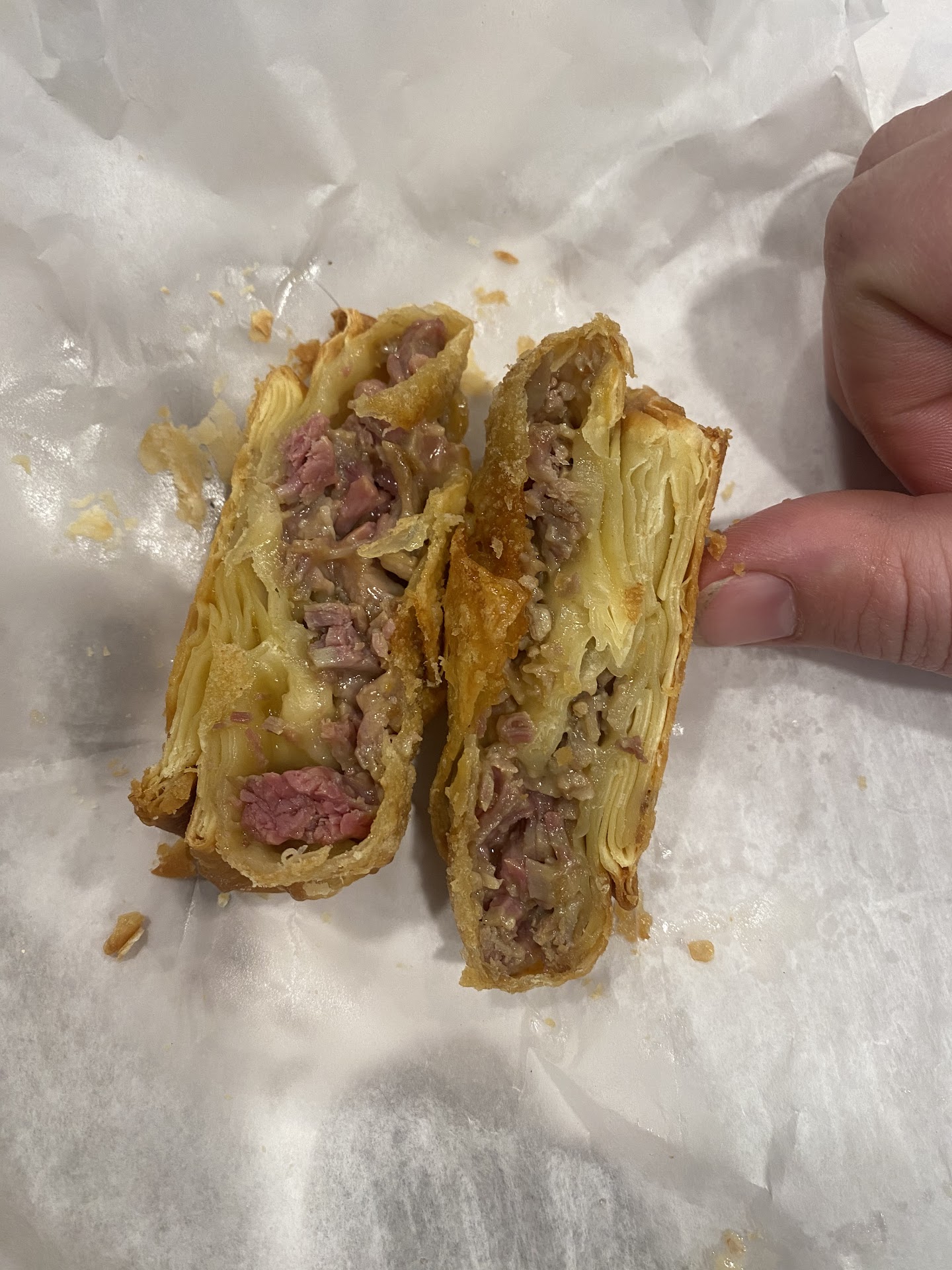 Two stars awarded to the corned beef egg rolls for being crispy enough to be passable.