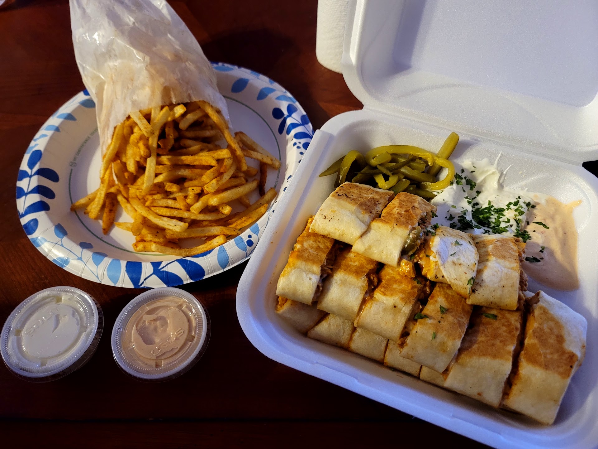 Wow! Absolutely astonished with the flavor packed in the chicken shawarma saj! FINALLY a taste of new and refreshing flavors that are original and unique to this establishment! We no longer have to drive 4 and a half hours to Chicago to get a good shawarma! MASHA2ALLAH on the flavor! I RECOMMEND EVERY DETROIT FOOD VLOGGER to give this place a go! Firstly, the customer service is above and beyond, from the moment we called to place the order, to arriving at this soon to be VIRAL establishment. Secondly, they are CLEAN, ORGANIZED and FRESH! Hyper and optimistic staff that are not afraid to show a tooth filled smile to customers. The shawarma is dripping with juices from the chicken (not grease and garlic) but of the actual chicken and the chicken seasoning. I'm beyond happy they are minutes away from home! Usually a shawarma (the actual meat) is pretty tasteless, and the flavoring depends heavily on the garlic and pickles... THAT IS NOT THE CASE HERE! The garlic and the pickle compliment the chicken beautifully and allow it to be front and center! The shoe string seasoned fries are also great! This establishment and the staff and who ever was the mastermind behind the flavoring (tidbeeli) deserve all the hype, they truelly do! As food lovers we need to give credit where credit is due! Let's make this place viral! There's a reason why...