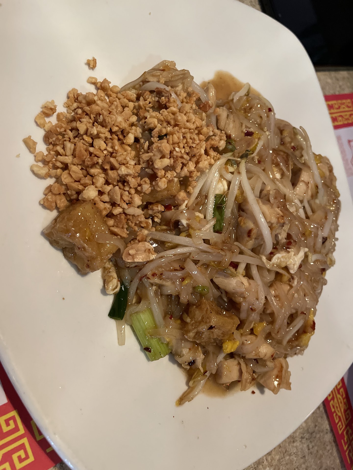 The pad Thai was good. Medium definitely gave a kick of heat. I would probably go to mild next time. I appreciated that it had a lot of sauce and wasn’t dry and lumpy as some other places. But it was lacking in green onion, egg, no lemon slice- also, very light in portion of chicken. I actually also added shrimp to the order. Definitely not worth the extra charge. The sauce wasn’t too sweet