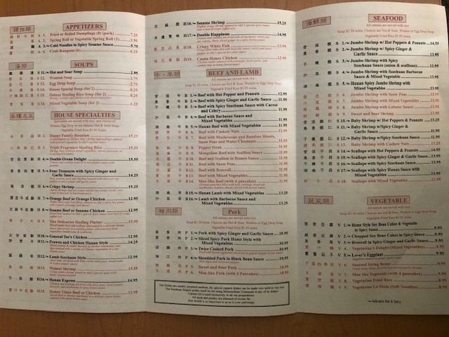 Food: This used to be the best Chinese food around. Now, it tastes like every other Americanized, mediocre Chinese restaurant. It's like they decided to stop using garlic, ginger and spices in the food. My husband and I were disappointed in everything we ordered, and these are the same dishes we used to love. We ordered our General's Chicken "hot" and it was absolutely mild and bland. Our Kung Pao Chicken (hot pepper and peanuts) didn't have a single hot pepper in the dish. Special little touches like hot tea and orange slices are no longer offered. They were out of green beans, so I can't tell you if that dish remains tasty, but I'm not hopeful.