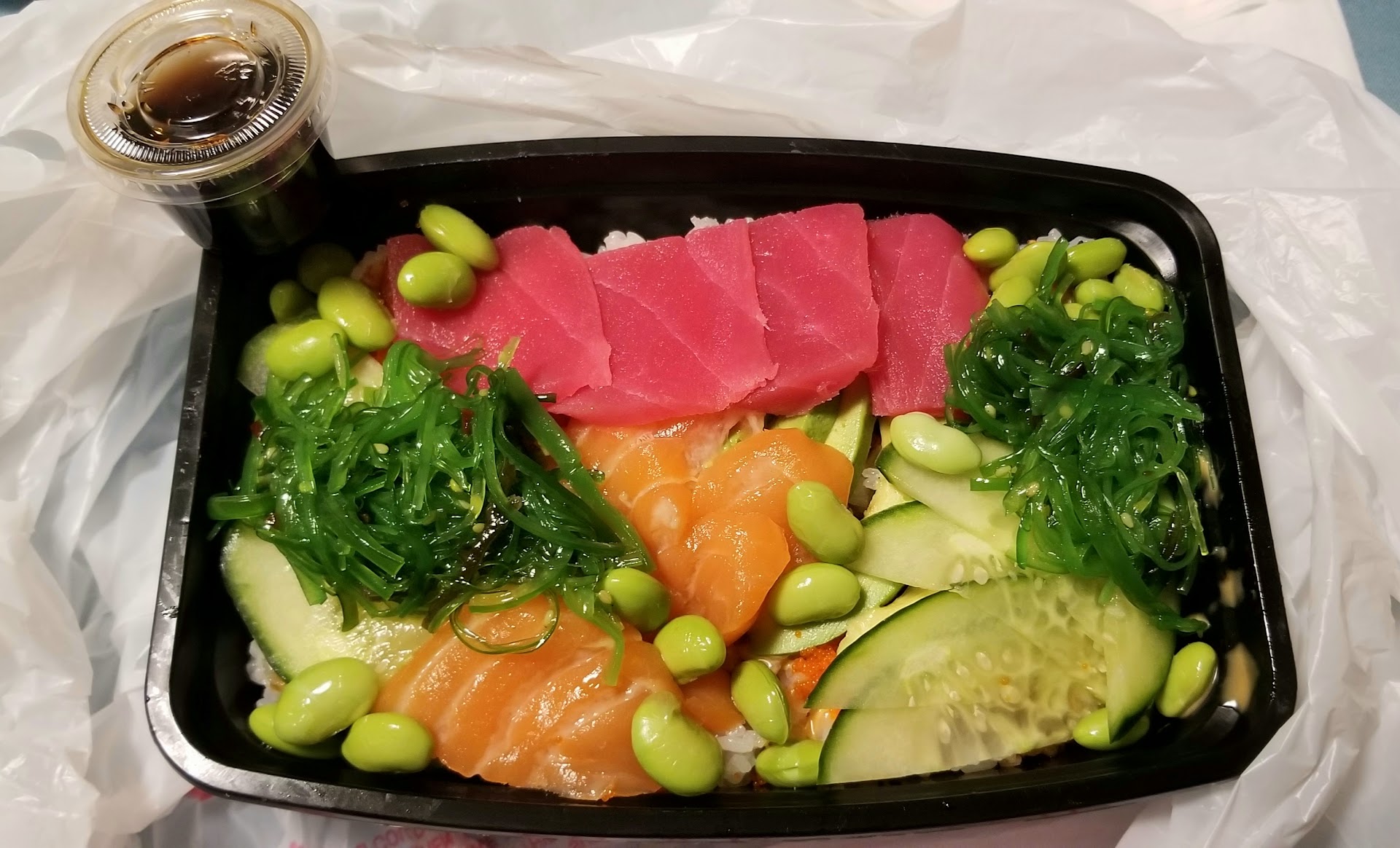 Taste/Quality of Ingredients 3/5 The food that I ordered consisted of a sushi roll, miso soup, edamame, and a Phõ bowl.