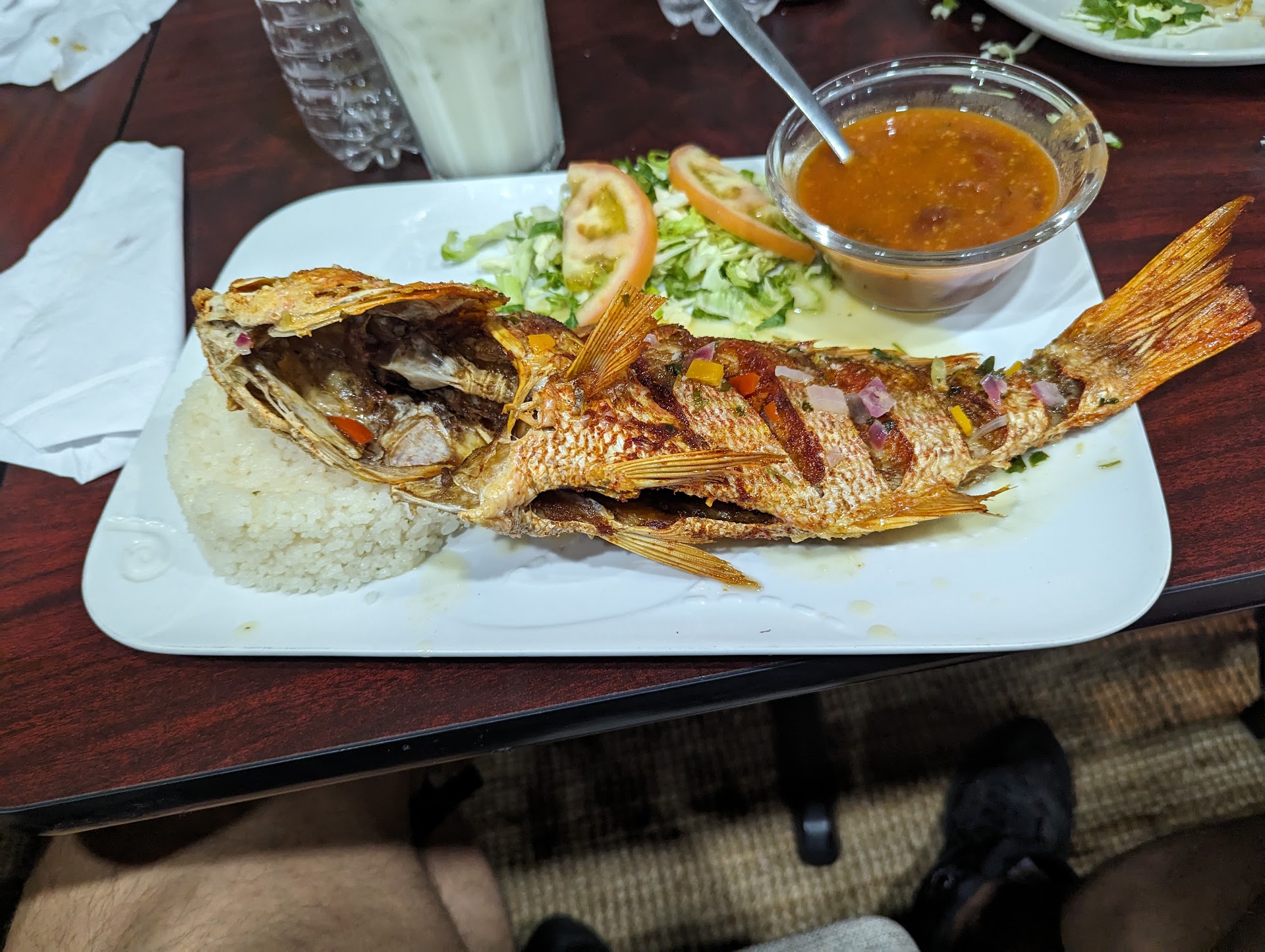 Everything on the menu sounded so delicious and I love seafood, but I was dining solo. I still overdid it though, there was no way I could leave without trying one of the appetizers, especially since this was my last dinner on the island. I ordered the firecracker grouper and was so glad…OH MY GOSH! I went with the whole red snapper and tostones on the side, it was cooked to perfection and seasoned well, there was only bones left when I was finished. Dov recommended I try the tamarin sauce for the tostones and I agree it paired very well as a dipping sauce. Of course, it was too much food for one person, so I had my grouper for a late-night early morning snack. The fish is served at market price and since Puerto Rico is a U.S. territory expect to pay a little more.