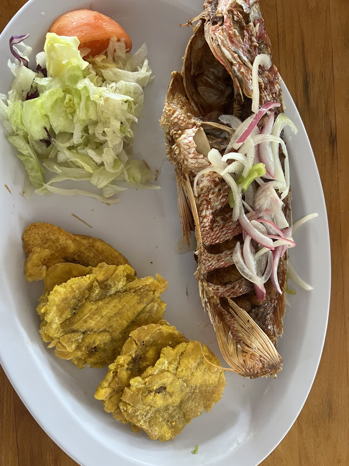 Read moreCame here for a lunch, and I believe either the owner or the manager was there. He was super sweet and helpful. It started raining right before we could order. We started with the ceviche cup and a bacalaito which it actually came after we were almost done with our food. It was really salty, bacalaito is normally salty but I couldn’t even eat a lot of it. I ordered the red snapper fried with the garlic sauce. I wish it was fried hard because the sauce made it more saggy. My partner order the mahi mahi which was very hard and not fresh. We also had the piña colada which was really good but it had so much whipped cream on the top, we scooped it out few times and it was still overpowering. The bathroom need some serious work done, they had no toilet paper nor soap. I always travel with hand sanitizers and baby wipes. There was construction going on as well just FYI. Food took a while to come so definitely order something that is already premade as an appetizer. I tried asking my server to explain the sauces flavors options for the fish and she couldn’t explain it (not in English and en español tampoco pudo explicarse) she was sweet just not as knowledgeable. Overall we had a good time there, I am not sure if I would go back to this specific spot but they area was very...