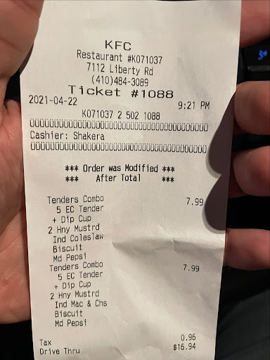 Read moreSo I was in a rush thus particular day and decided to stop past the KFC on a lunch date with my wife. When we entered the restaurant to dine in it was the normal feeling for a take out spot. The young lady at the cash register was very polite and well mannered and made conversation with my wife as we waiting for our food. As we sat down to eat we realized that the table had crumbs and food on the seat as if it hadn't been cleaned in a while. The food was average at best one got a chicken tender deal to share with my wife . Chicken tenders seemed fresh but macaroni and cheese was kinda ordinary at best. Overall it was a decent experience and if your in rush the service is pretty quick and they are not to busy around lunch time. The employee really made it om because she made...