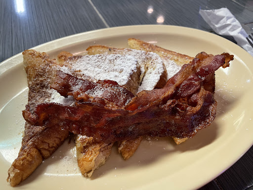 We came here on a Sunday morning around 9:30, my husband, myself and our two kids. It was kind of dead and we were hesitant but the reviews seemed okay so we stopped here. It was nice and quiet inside which I appreciated because the kids are always a lot and sometimes loud TVâs or music can be overwhelming. The place was clean. Definitely felt local, kind of like a hole in the wall place. Not chain restaurant vibes. Mia was our waitress. She was polite, attentive, and got everything we asked for right. We asked for an extra plate, extra creamer, extra butter and I substituted breakfast potatoes for my eggs and she nailed it. They donât have a kids menu but we split the pancake plate between our 2 and 5 year old and it was perfect. The portions were generate and the pricing was great. Most of the plates were between $8 and $11 but some were actually less than $8. $40 total for 4 people is pretty good and we all got drinks too. We will definitely make this a staple for our Sunday morning...
