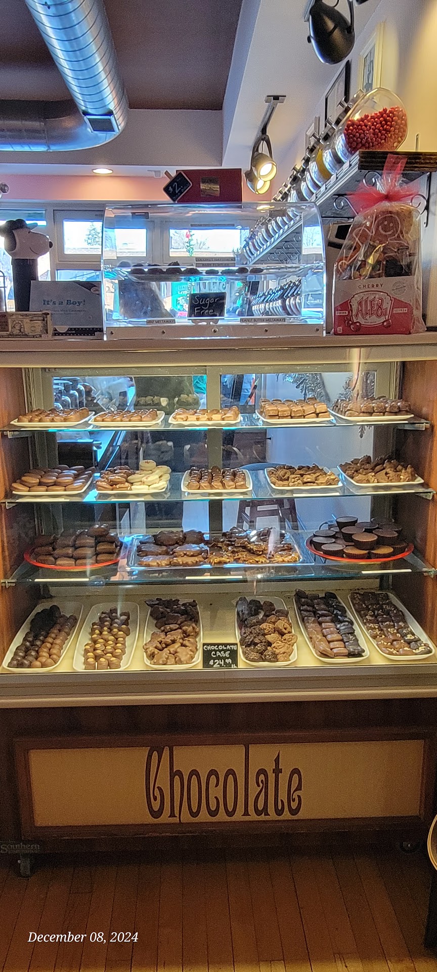My husband and I were there because he wanted ice cream. The shop is small but set up nicely. He had the Fat Elvis and I had mint chocolate chip. Both were very delicious. There's a variety of 8 flavors for ice cream. The owner Gina, was super nice, friendly, thorough, and knowledgeable!! Her helper, sorry I forgot her name, was great as well! There's a variety of drinks, chocolates, gummies, chocolate covered items, and some novelty treats. One small table to eat ice cream inside and benches outside. The one drawback for me, the building does have a large step to go inside. That is a problem for a wheelchair user. If you visit downtown Lockport you already know there's many shops with steps. For those who use Uber Eats they do use that forum. Personally I suggest you go in and see...