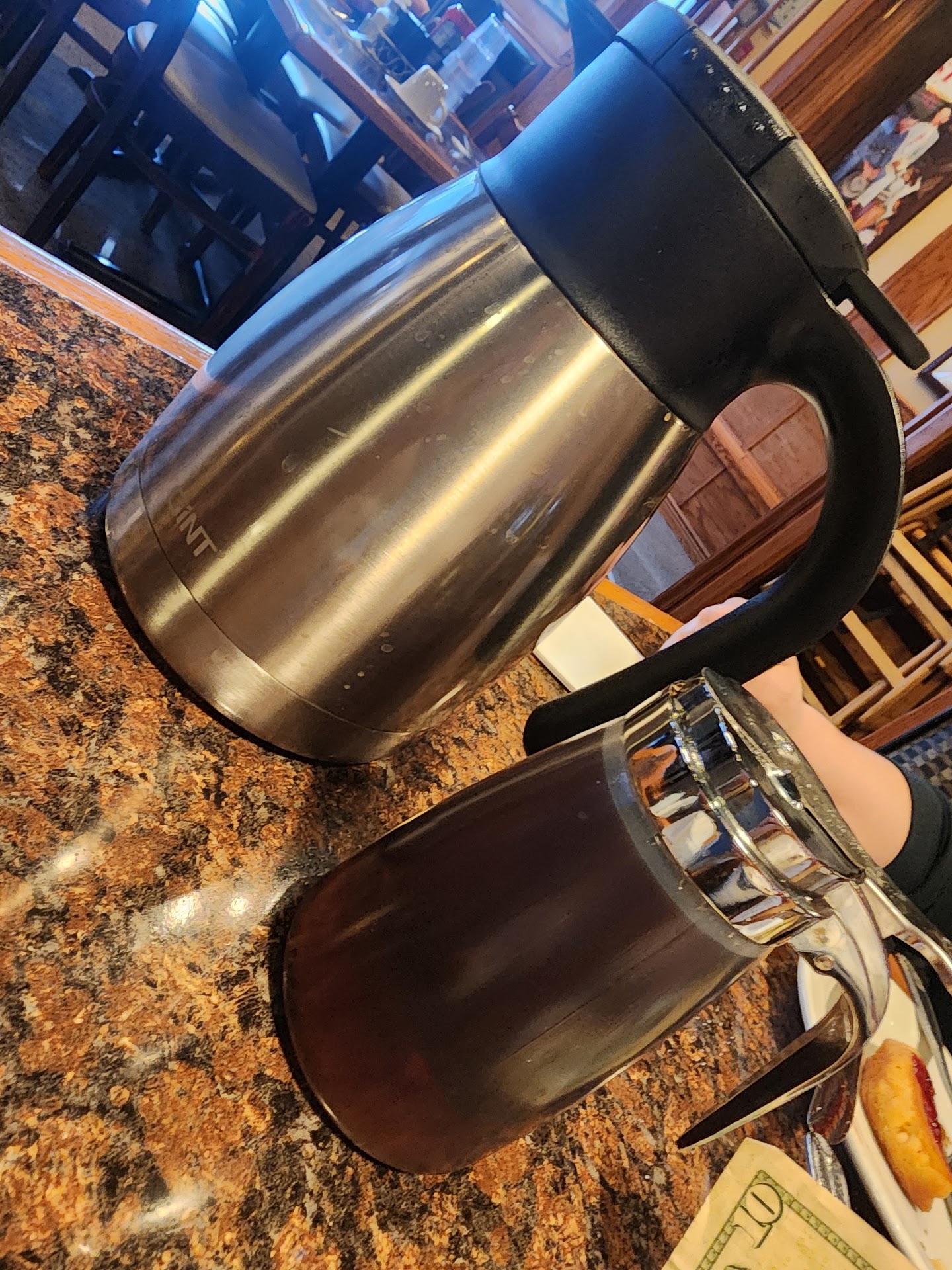 Don't you love it when you get a carafe coffee at your table that you can serve yourself?! Us too. Important for later.