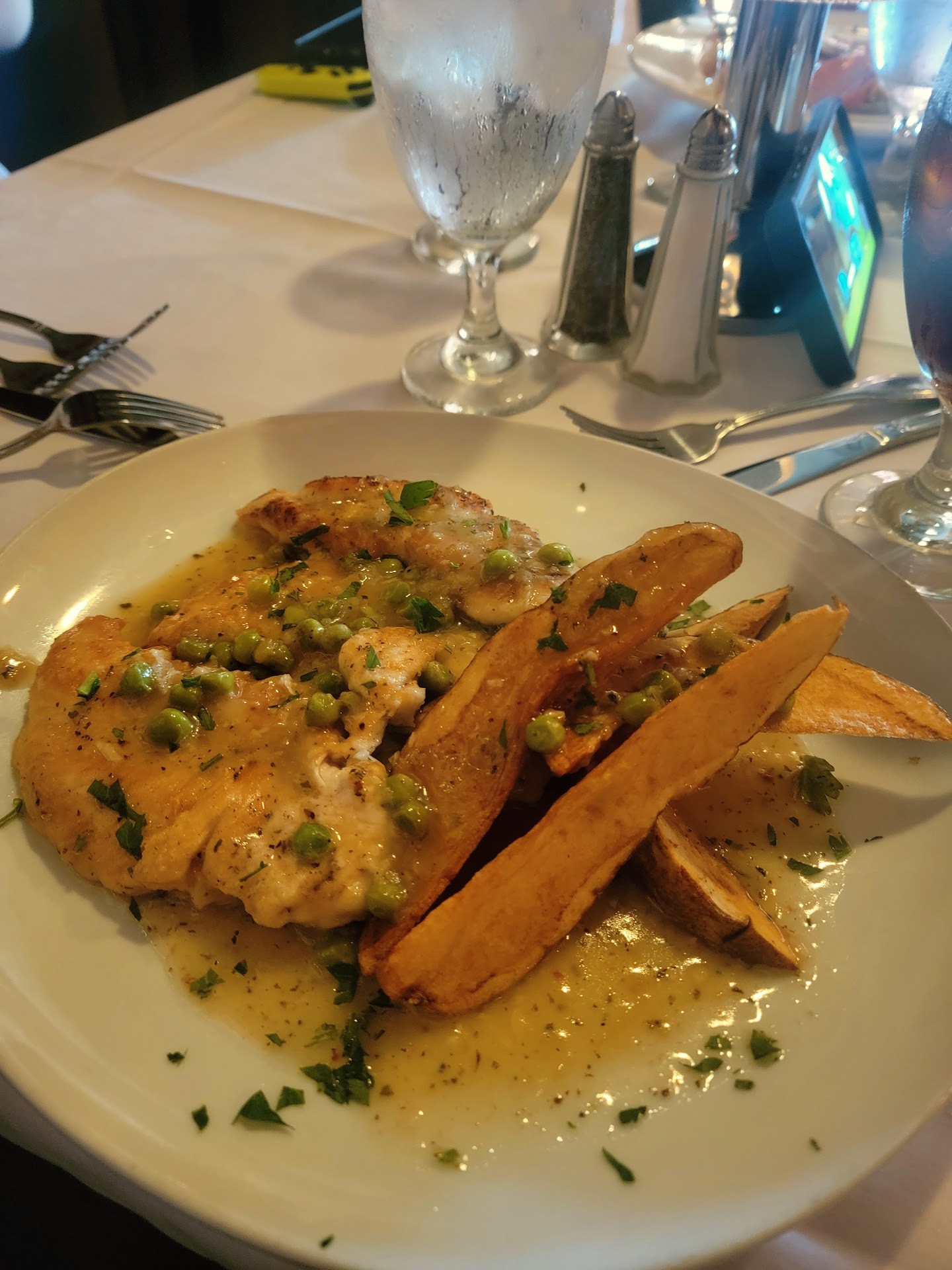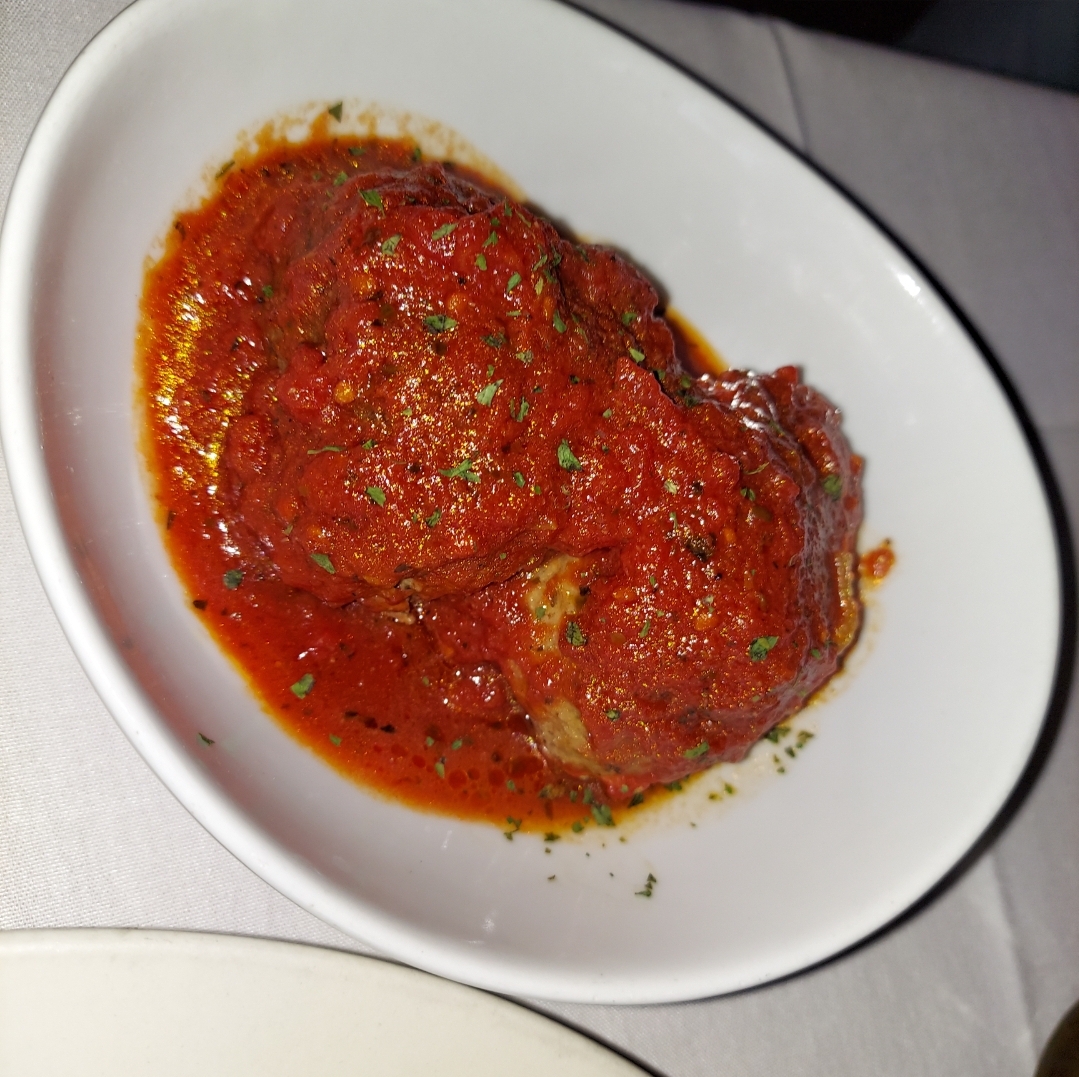 Weds evening visit. Ordered a Negroni for an aperitif, the bartender made it very well. Ordered dinner with chicken rice soup as a starter. The soup was decent and arrived hot, typical flavor and meet expectations The dinner arrived with some bisquick -like rolls that were sitting in a pool of a garlic oil/butter. The rolls tasted stale with a very hard exterior. Fresh Italian bread would have been a better accompaniment. Entrees were veal parmigiana and chicken parmigiana for my guest. When the dinner arrived, a very noticeable difference in portion size between two very similar entrees which seemed odd. The veal parmigiana was described as having mozzarella cheese on top which was almost non existent. Veal was dry and breading was soggy and falling off. Very, very small portion of both the veal and pasta, but abundant on the sauce. Looked like a coverup. My guests chicken parmigiana was a much better in quality and portion size and had a crisp exterior that held up to the sauce. Noticed that the menu had an extensive listing of substitution/add on charges that did not seem customary to a full service restaurant of this type. Additionally, there is a 3% charge to use a card, which I presume most people use nowadays. From my experience, this establishment seems to care more about profit margin that quality and value. The restaurant is very clean but the staff can use a bit...