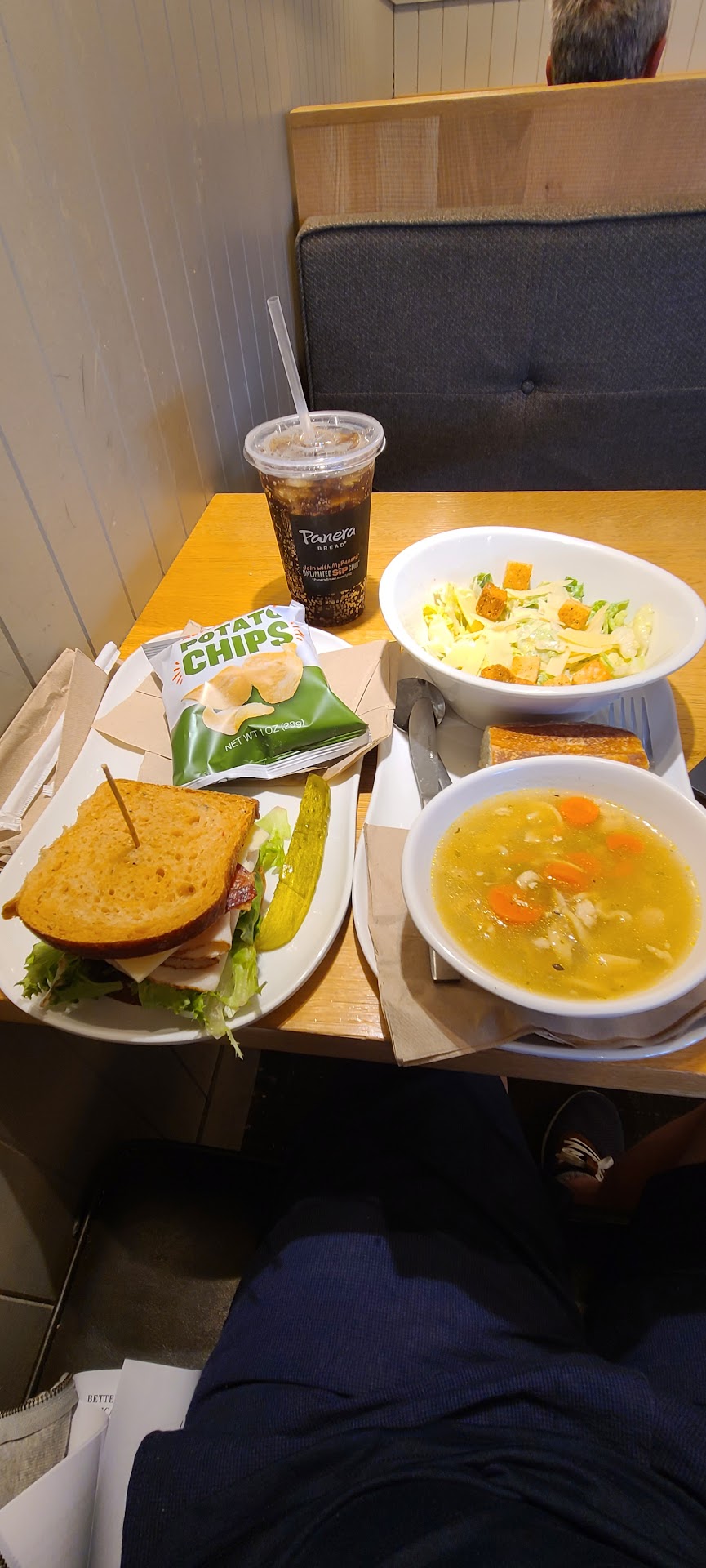 if i could give this panera restaurant 6 stars i would; this is by far without a doubt the best panera bread i have ever been to and i have been to a lot! it is always clean and i mean always. every worker there that i have interacted with is so nice, bubbly, welcoming, and extremely helpful. the food is always on point, i have yet to find something made poorly or even that i didnt like! my favorite is the chicken noodle soup and frontega chicken sammie, a delicious combo. (the accompanying photo i have included is the turkey bravo sandwich which would definitely be my cold sandwich go to.) if youre a mac and cheese fan try the one with bacon, just trust me lol. my personal opinion is that their coffee is better than starbucks or dunkin donuts but i mean everyone has their personal preferences so i guess its subjective. their agave lemonade is super tasty and was oh so good on that super humid past sunday that we had, and if you go halfsies with the iced tea thats good too. i havent had their breakfast so i cannot comment on that, but i have heard that its yummy. i do know i love their brownies and cookies though! maybe too much lol. if you like having plenty of electrical outlets theres definitely no shortage here, with one at probably (or close to) every table if you would like to charge your phone or get some work done on your laptop. and dont worry, its usually relatively quiet noise-wise so you shouldnt be too distracted. oh and i witnessed the restaurant manager, i believe his name is jeff, going up to make sure everyones order is correct and that customers are enjoying their meals and are comfortable...i like that, it says a lot about a place. and dont forget a hoodie! it can be a bit chilly in there but hey better than being hot! you can always put more on but only take so much off! but if youre looking for a good coffee/sandwich/soup/salad place in lockport, this in my opinion is the best choice and would highly recommend. and do yourself a favor and look into the sip club, you wont regret...