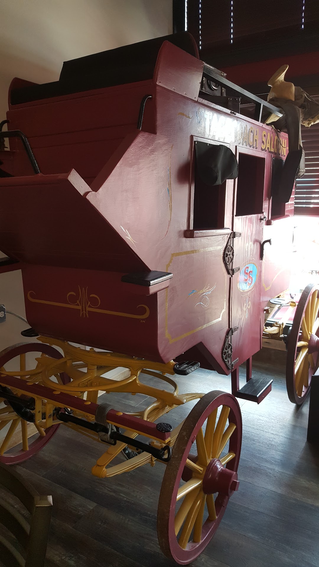 We arrived at the location to find most of the entrance had been blocked by construction. This was remedied by a sign showing where to enter. Upon entering, we were struck by the adherence to the "Stagecoach" motif: there was a small Stagecoach set next to the entry, employees decked out in "Wild West" saloon get-up.
