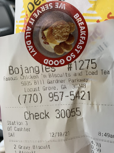 This is an update from my previous review. I am changing from 4 stars to 1 star...I wish 0 was an option. So, I have visited this establishment 3 times in the last 2 weeks. All three times, I left empty-handed. Although the posted closing time is 10pm, I went through the drive-thru at 9:40 one night because I had a craving for fried chicken and I was simply ignored in the drive - thru line along with two other vehicles. Another night, I sent my husband at 9:15 because I still had the craving and he informed me that the employees actually looked at him, but he was not able to order anything because again, he was simply ignored (this was all during the week of the 12th and19th of July). Today, July 24th, I tried again at 5:35 pm and I was informed in the drive-thru line that no chicken was available...at least not enough for an eight piece. This is prime time dinner traffic and the chicken is not ready? I was informed there would be a 20 minute wait. I politely said no thank you and left. I will NEVER return again. 1. Why post hours of operation that you do not adhere to? This is clearly not a credible establishment. You just change the hours of operation on a whim or because you want to close early? 2. The employees are either untrained properly or are simply apathetic. In either case, this is a serious problem either from the management perspective or the owner/ franchise perspective. What type of organization is this? If you cannot follow the posted hours of operation in your OWN restaurant and hire well-trained employees who can execute, you should shutter the organization either temporarily to retrain and/or rehire or close permanently. To say I'm appalled cannot sufficiently describe my sentiments about the Bojangles in Locust Grove. I now drive to the Bojangles on...