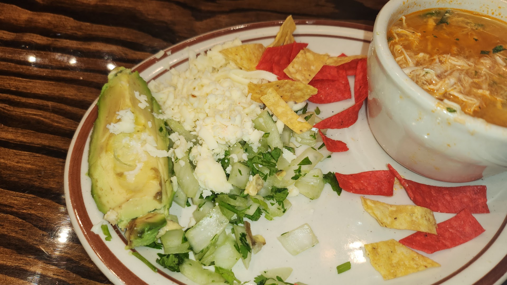 Read moreStarted w cup soup. There was a load of onions mixed with cilantro. So it tasted and looked like there was barely cilantro. Which id prefer. Usually they have that separate from each other OR they have a pico de gallo type which there was no tomato. Which is fine. But i prefer more cilantro, not barely any, and being overwhelmed by thicker pieces of onions. Soup wasn't bad. It was just ok. Im allergic to dairy, wheat, treenuts, and shellfish. He was so fast that i didn't have a chance to barely get a word in. Feeling dismissive. The salmon was so overcooked it was hard or so so dry. I love salmon and eat it often. I've never had such bad salmon. Now, grant some ppl like their food overvooked or cook super well. Well, not me. The salmon was not soft, moist, good, and tasty at all. It being a special and new im unsatisfied. The vegg were also overcooked. They were chard but overcooked thin, super dry, tasteless, and just awful. The mashpotato, even by looking at it, i knew it wasn't going to be good. It wasn't. This meal spent was very disappointing. Also, when i bit into the veggies, this extremely hard item was in there. im surprised i didn't chip my teeth. Idk what it was. i just took a picture, and now it's just time for me to get out and get my check. Im so over it. Barely can get a sentence in to tell the server what my experience was and about this hard thing. Started by asking if i could get a togo cup for my drink, and he quickly rushed away from the table to serve that i had to yell and the ck as well pls. Like, ughhhh. Calm dwn! Listen to your customers. Anyway. I'm never coming here again. Sorry. It looked great from the outside, and ppl seemed to be enjoying their meals. Guess i ordered the wrong stuff at the wrong time. Beautiful place tho. Beautiful pictures. Clean bathrm. Ps sorry took pictures after i tasted food so some stuff missing. Like the avocado i started scraping the brown parts off and dots. Usually that onthe avocado makes me itch (allergic when its not freshly good) when it browns for some reason its not good for me. The salsa for chips was sooo red soupy no texture no flavor no kick. I had 2 chips and was over it. Im surprised by all these good reviews how much this place wasnt good at all at all. There must not be many good restaurants around or idk whats up...