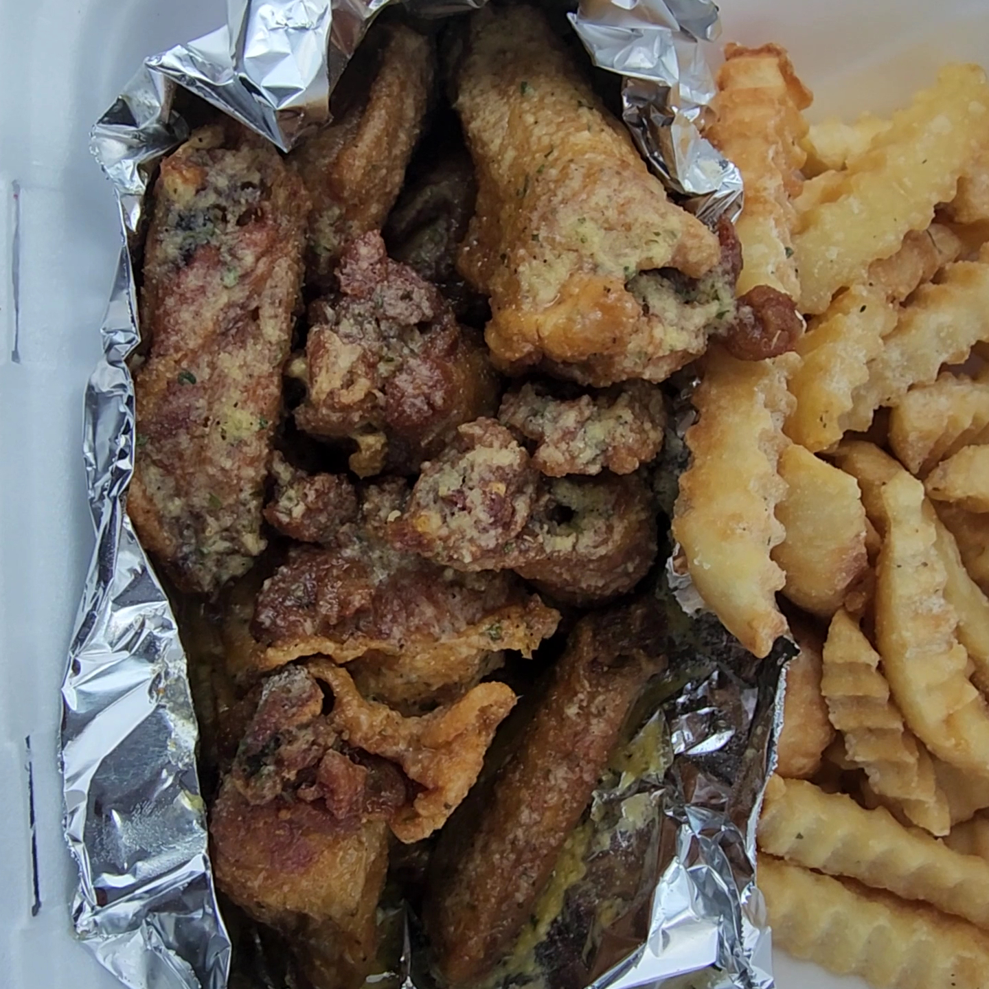 Read moreI visited Tasty N Tempting while doing a small pop-up shop across the street from their location. This was the only food place in sight and I keep seeing so many cars in and out so I had to try it. I had the 2 piece catfish plate with coleslaw for the sides. I didn't get pics of that because it was so good and I ate it so fast. The fish was cooked to order and fried hard like I like it. It was well seasoned also. The food pictured was a plate the cashier let me try. I think she called them KD wings. Honey, garlic, ranch I think we're the seasonings. They were soooo good. Nice combo with the flavors. Those too were cooked to order and I liked that even though you may have to wait I prefer my food fresh. The cashier was so nice and sweet too. Only thing is you can't sit inside to eat your food, you can sit on the patio or take it to go. If I'm ever in Locust Grove I would definitely...