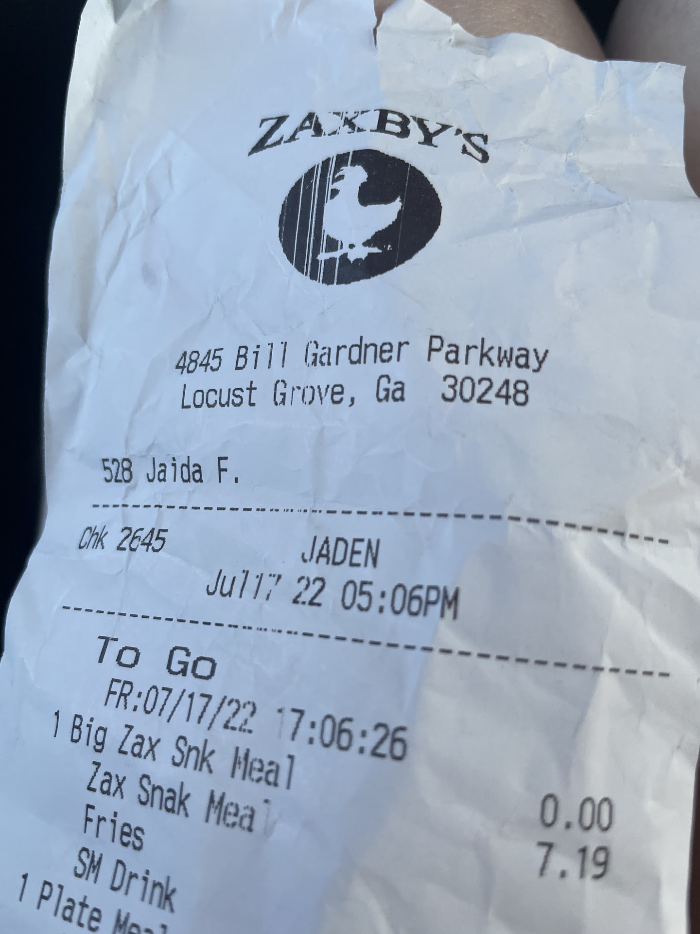 We went ordered our food and waited and waited for over 45 mins. My friend paid for the meal so I just her handle the situation. However, her daughter went to the counter with the receipt and found out to our dismay that the ball was dropped and our orders was not even on the board to be made. He said thr cashier or expediter did send the ticket to for the food was to be made. After a lengthy wait the food was OK not fresh and hot. Really Zaxby! The manager kept the receipt or I would have called in a formal complaint. I actually don't live in the area but come to Locust Grove to visit. At this point of time I don't I will ever come back to this location again. After 15 minutes of waiting I asked my did she or daughter leave a name to be called and she replied yes. She on term replied back and oh well it going to be hot and fresh maybe š everything is being cooked to order. She and daughter was visiting from Memphis and I took them to Tanger and afterwards we can there for lunch. This was a big mistake! I personally work in fast food while in college so I know things happen. However, come on guys and really. To get the order mixed with up or one meal or item not right can be a common mistake. Again though the food not even on the board/ line to be made is totally unacceptable! I am hopeful I will hear back from corporate in a timely manner and the manager coachs the person that dropped the ball and this never happens to another customer. Dear owner, I informed you in the above text your manager took the receipt. Thus is no way for me to give you the information you are asking for because that info is reflected on the receipt. My question to you is " Your response seems like a ploy to say you reached back out to me smh, however it was for your benefit there was never an offer to Replace the meal or any kind of concession to make up for horrific experience we suffered at the hands of your employees." Do you really care about the poor customer-service we received. If so please feel free to reply back with a offer to offset my experience. Thanking...